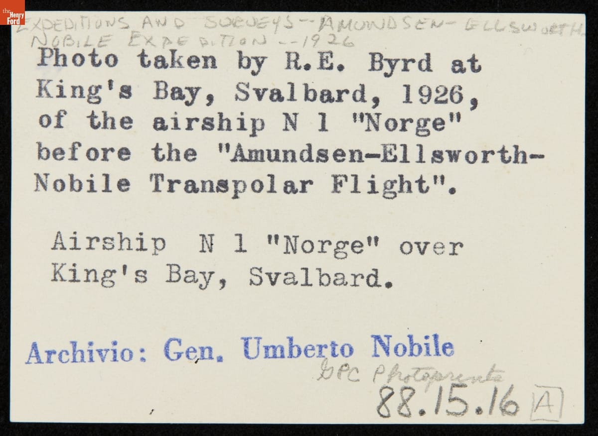 The semi-rigid airship Norge flew over the North Pole on May 12, 1926. It was the first confirmed visit of any kind to the pole. Norwegian explorer Roald Amundsen headed the expedition. He was joined by American adventurer Lincoln Ellsworth, who helped fund the mission, Italian aviator Umberto Nobile, who designed the Norge, and a crew of 13 others.