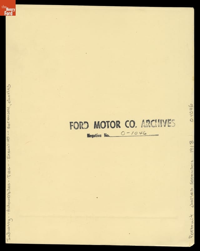 Charles Sorensen joined Ford Motor Company in 1905. He impressed Henry Ford early on with his strong work ethic, and Sorensen was given increasing production management responsibilities. His hard-driving style contributed to the company's enormous gains with the assembly line. Sorensen's greatest achievement came during World War II when he oversaw B-24 aircraft assembly at Willow Run.