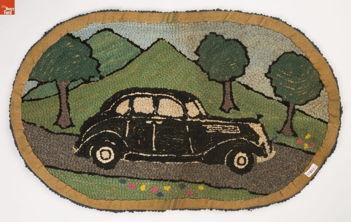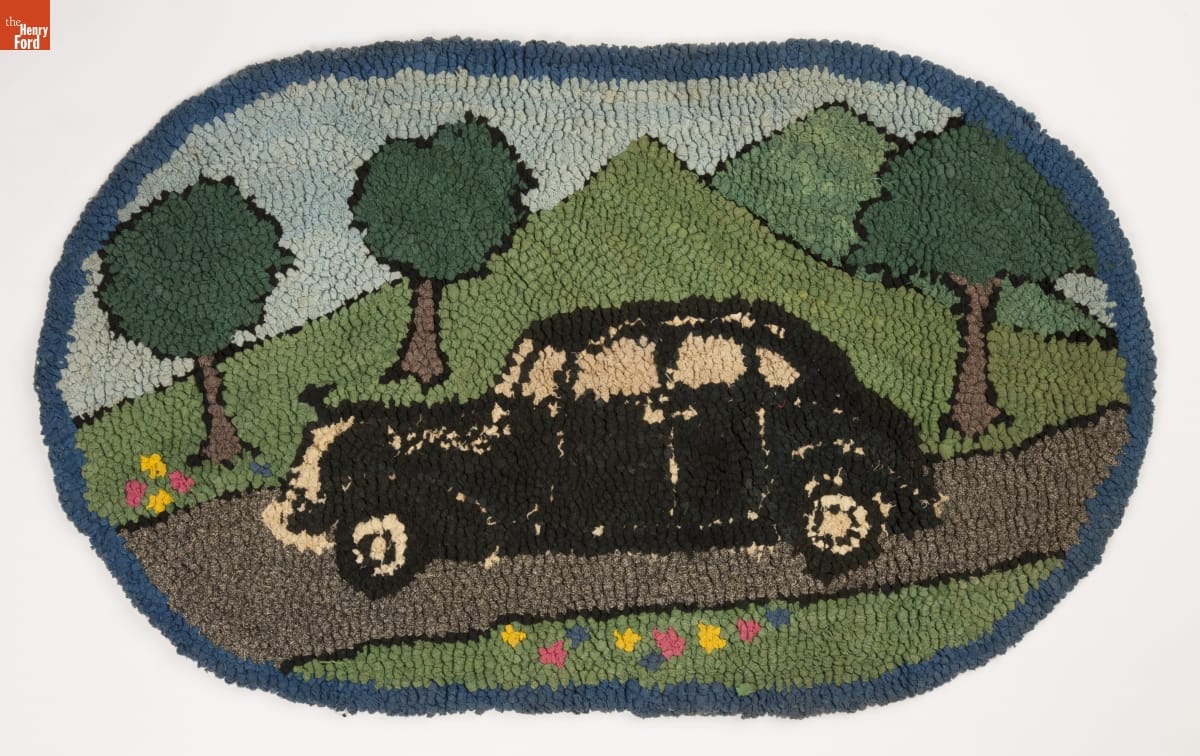 For many women in the early 20th century, Henry Ford's affordable automobile represented freedom and financial security, especially if they were fortunate to be part of the Ford Motor Company family. Their expressions of thanks were often homemade, like this unusual hooked rug. A popular gift, many of these found their way to the industrialist's estate, Fair Lane.