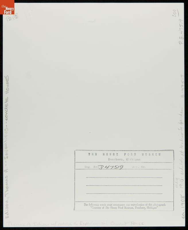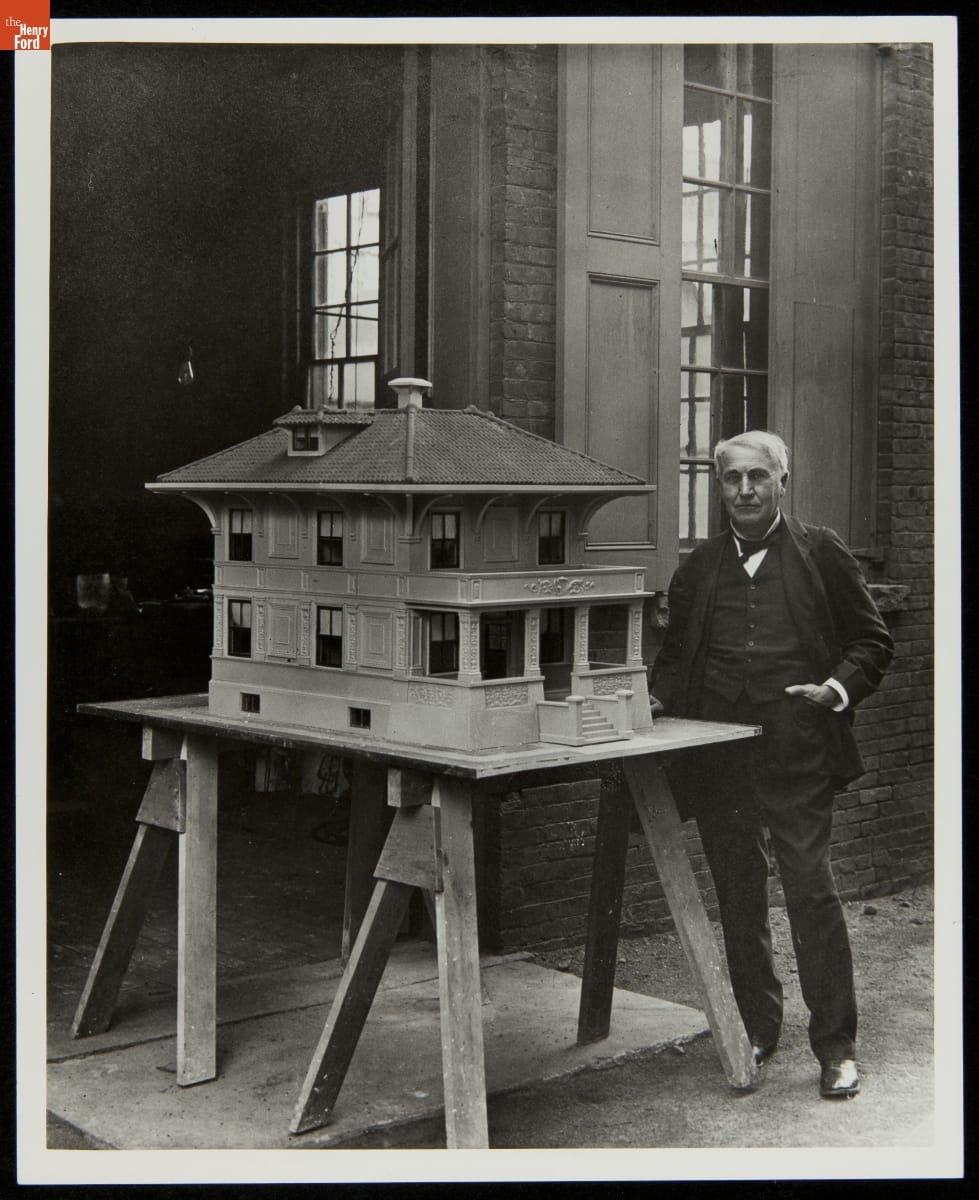 Thomas Edison with a Model of a Concrete House, circa 1911