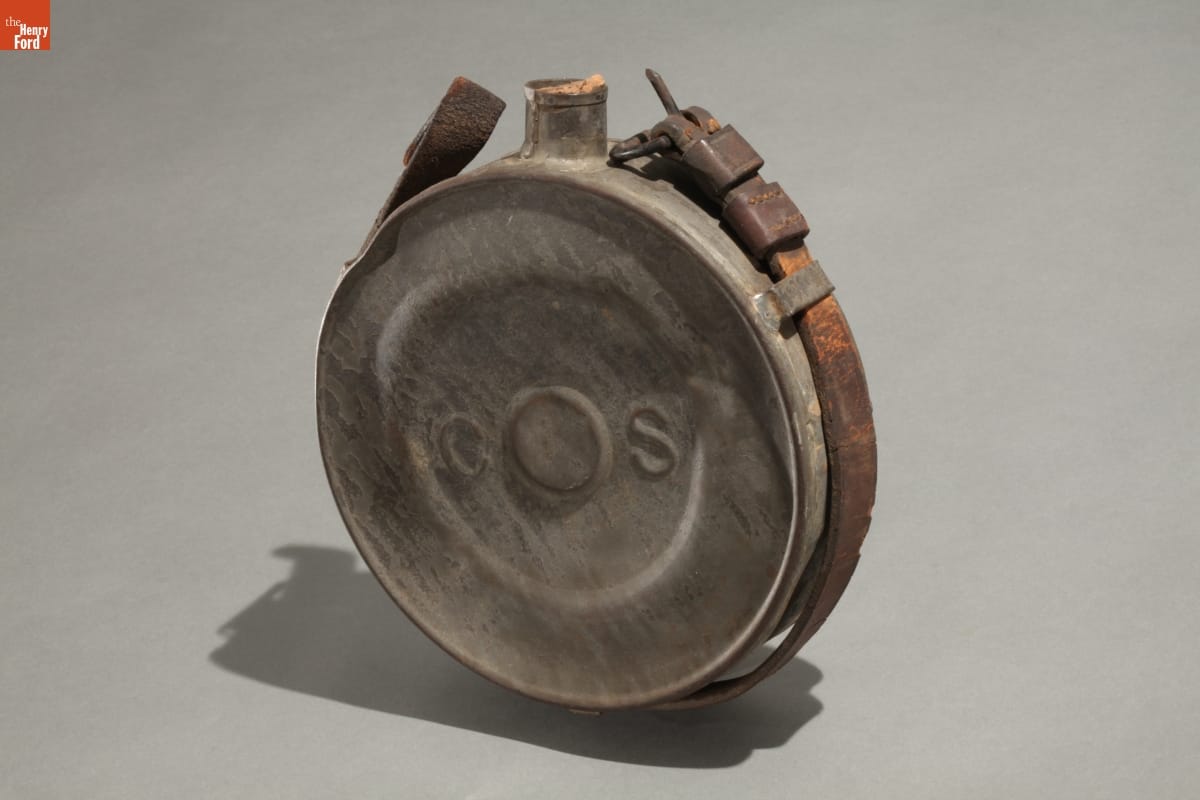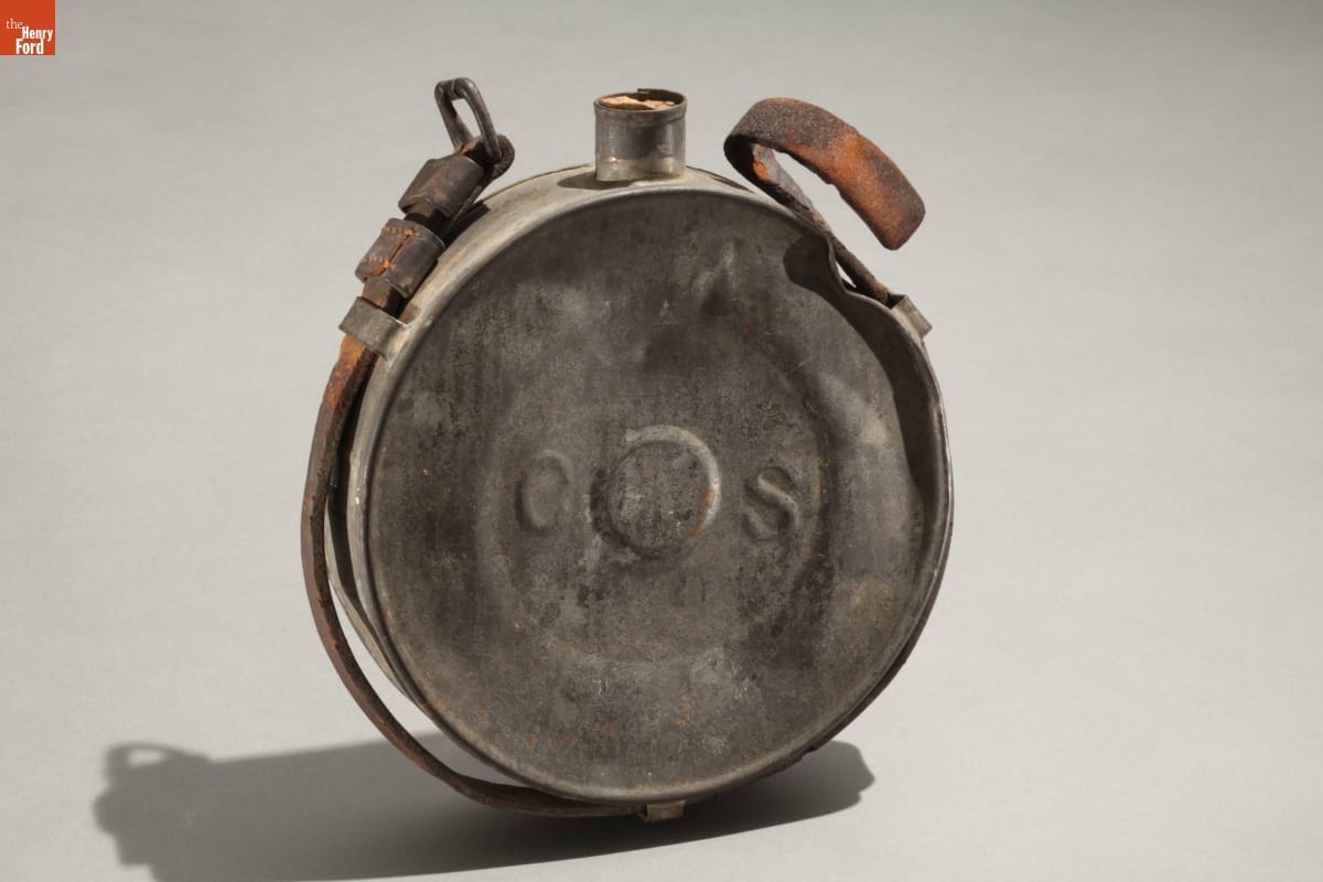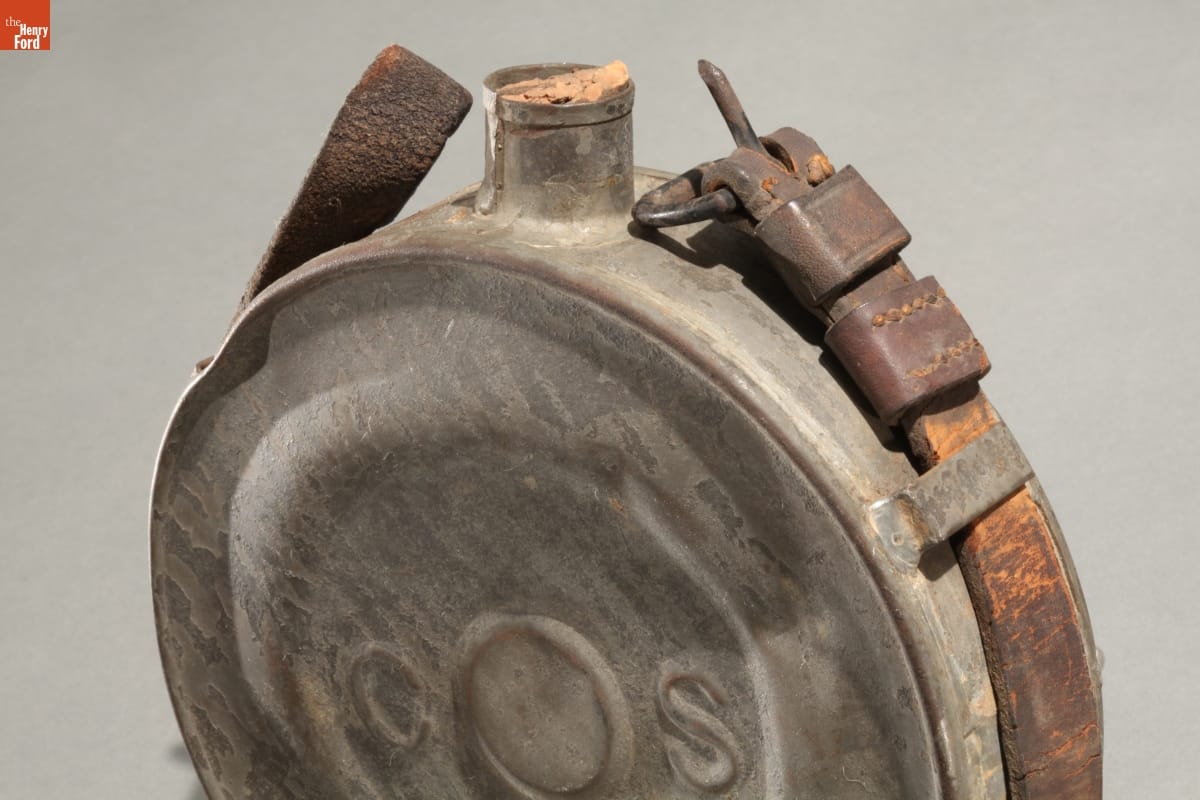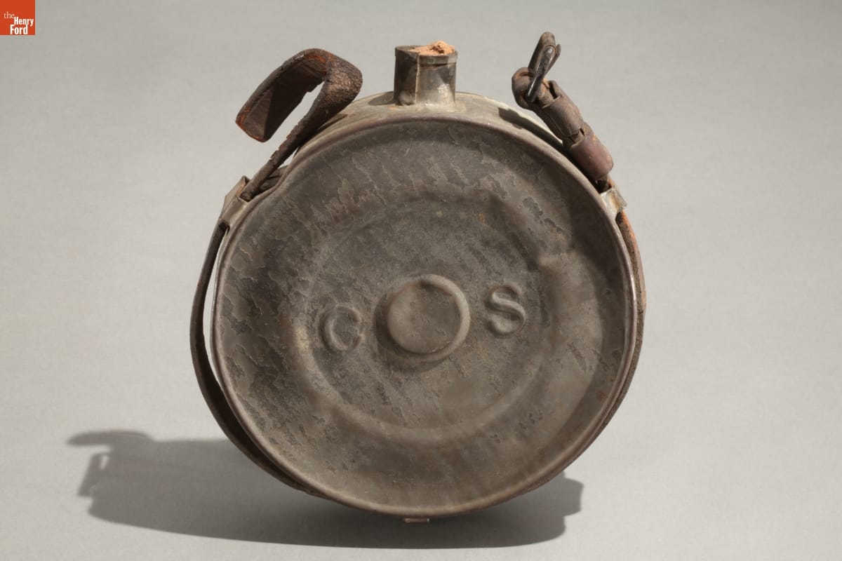 During the Civil War, Southern tinsmiths made canteens in simple drum or cylindrical forms like this one. This tin canteen - rare because it is embossed with "C S" - is thought to have been made in New Orleans in 1861 for Louisiana's troops. Confederate soldiers usually preferred metal canteens over wooden ones--they were more durable.