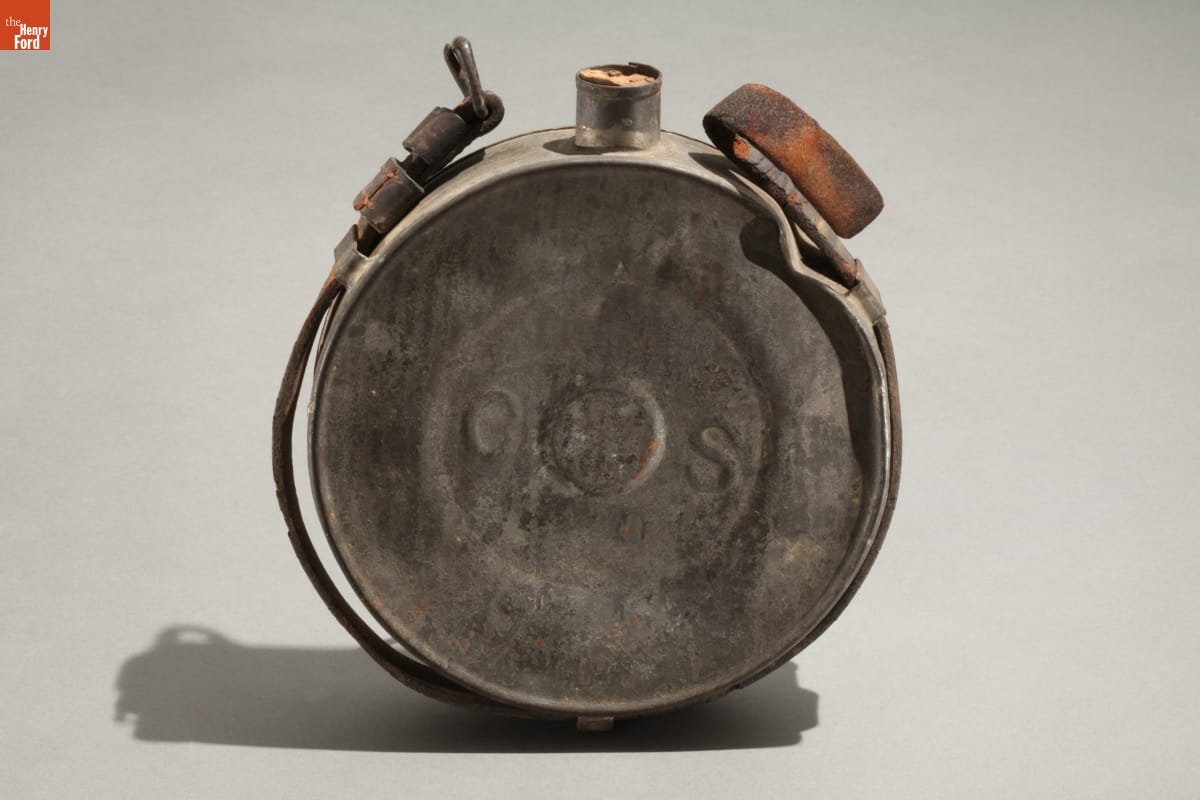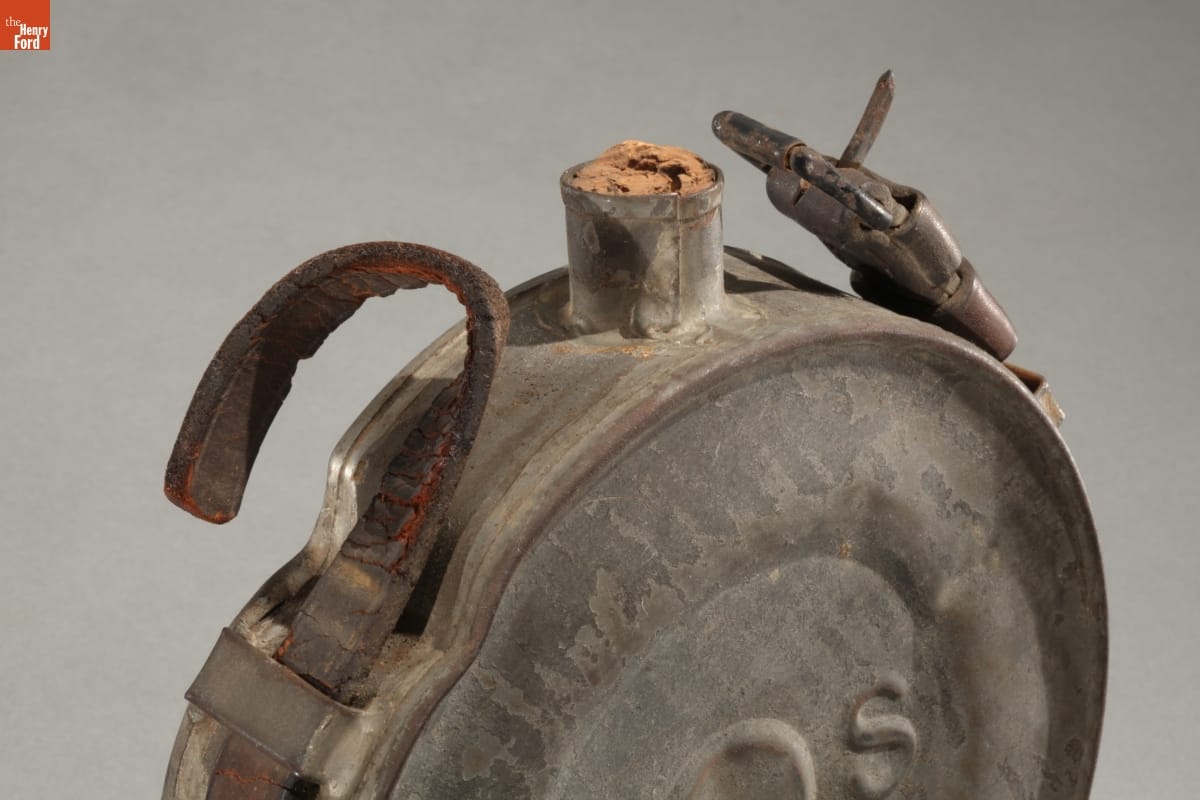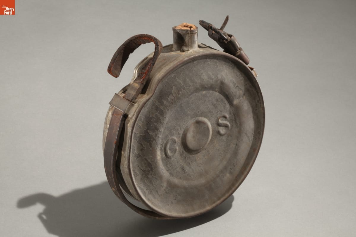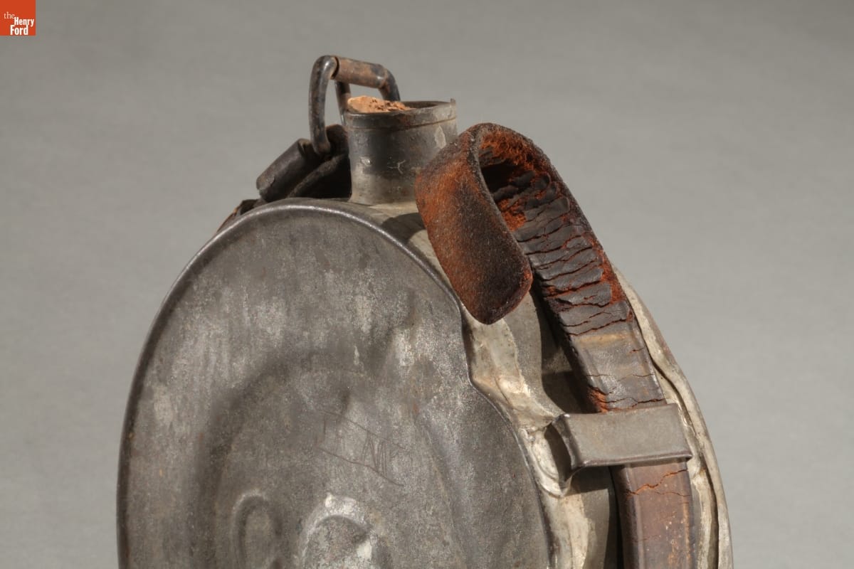 During the Civil War, Southern tinsmiths made canteens in simple drum or cylindrical forms like this one. This tin canteen - rare because it is embossed with "C S" - is thought to have been made in New Orleans in 1861 for Louisiana's troops. Confederate soldiers usually preferred metal canteens over wooden ones--they were more durable.