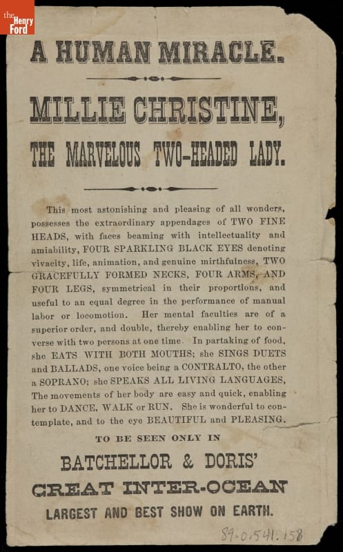 Trade Card for Millie-Christine, the Renowned Two Headed Lady, Batchellor & Doris Circus, circa 1882