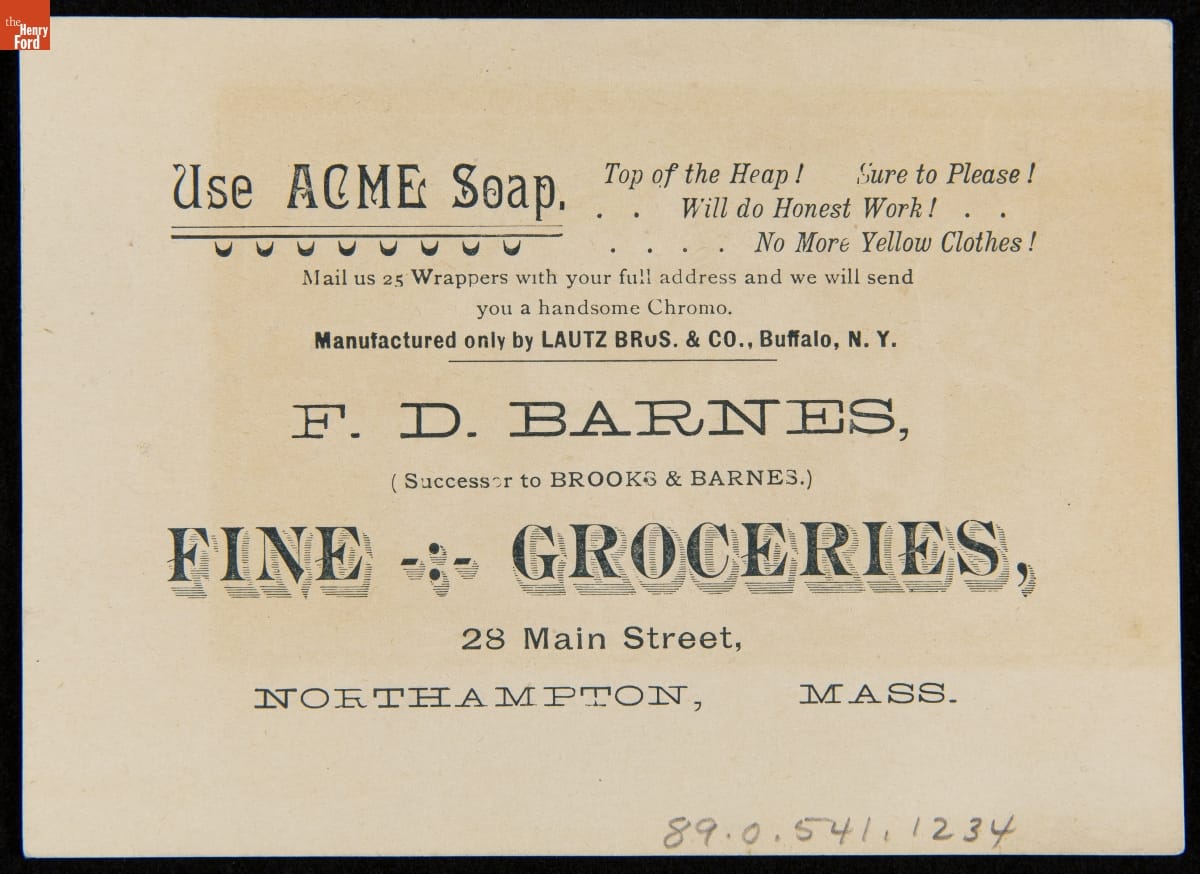Trade Card for Lautz Bros. & Company's Acme Soap, circa 1885