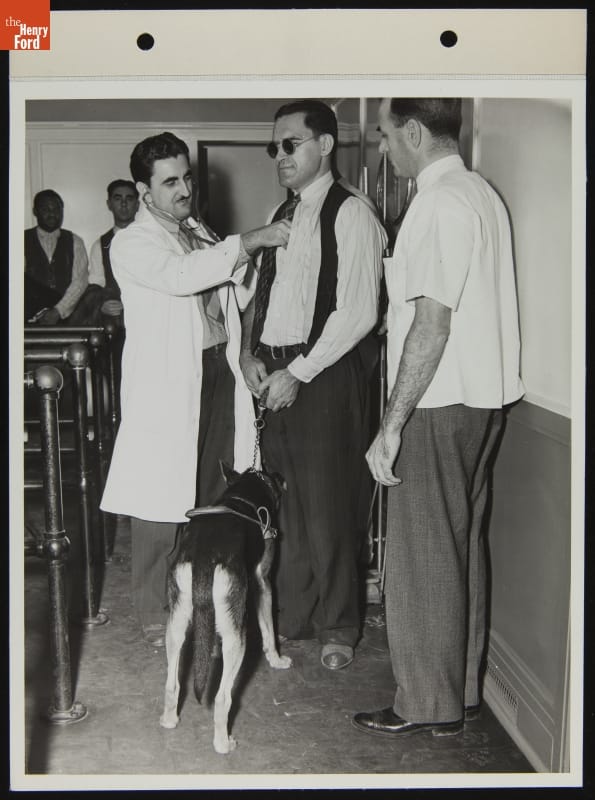 Medical Exam for Ford Employee Sylvester Rypkowski with His Service Dog, "Blackie," October 1942