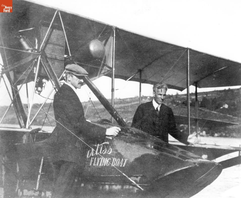 Henry Ford and Glenn Curtiss with Curtiss Flying Boat, 1913