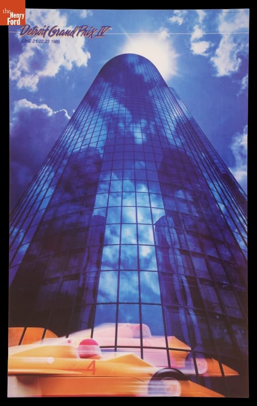 From 1982 to 1988, the annual Detroit Grand Prix was a Formula One event with drivers competing on a challenging street circuit through downtown. Each year, an original commemorative poster captured the excitement of the race. Finnish driver Keke Rosberg won the 1985 contest for Britain's Williams racing team. The race shifted to the CART Indy car series in 1989.