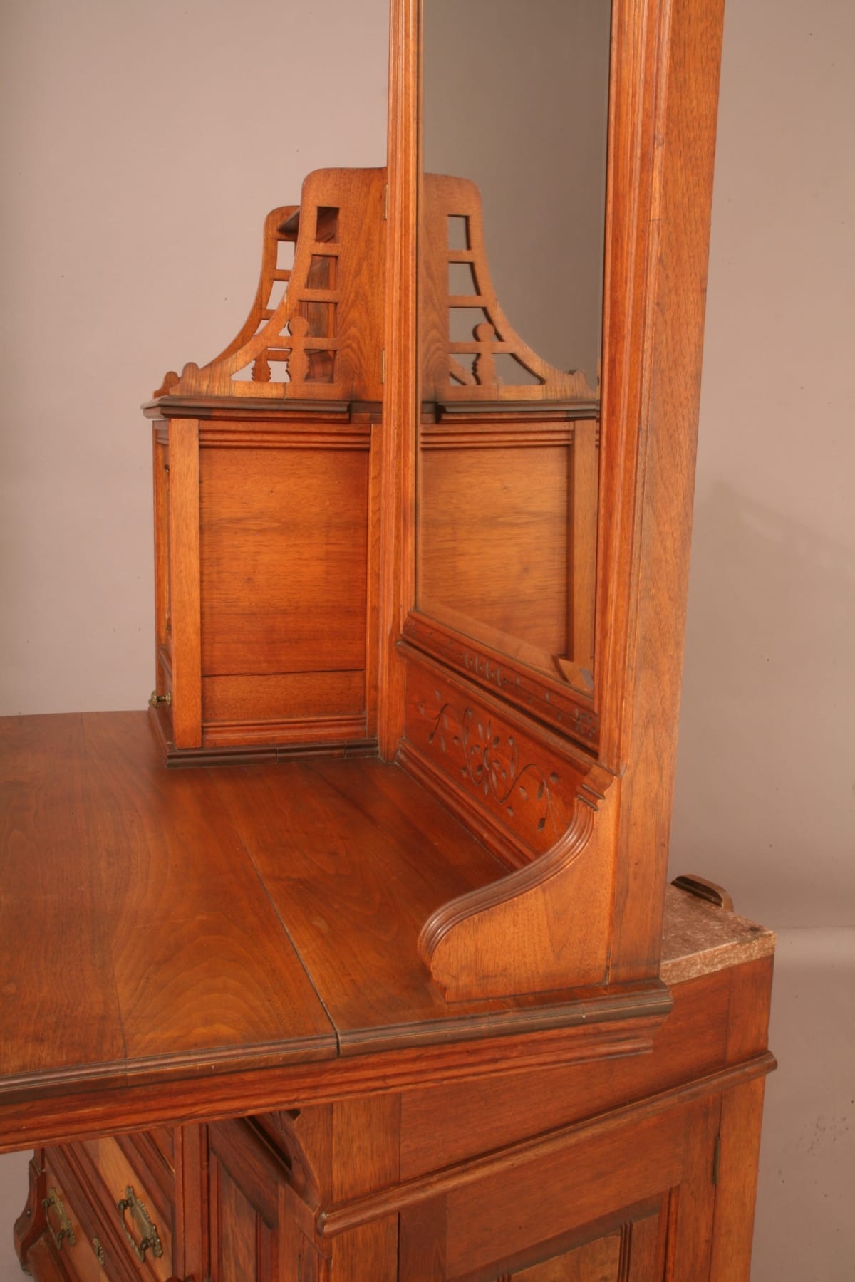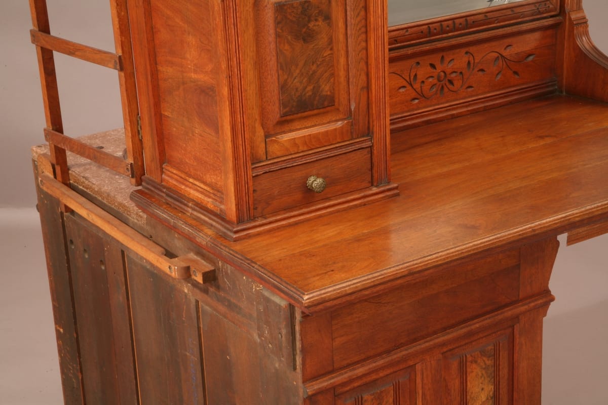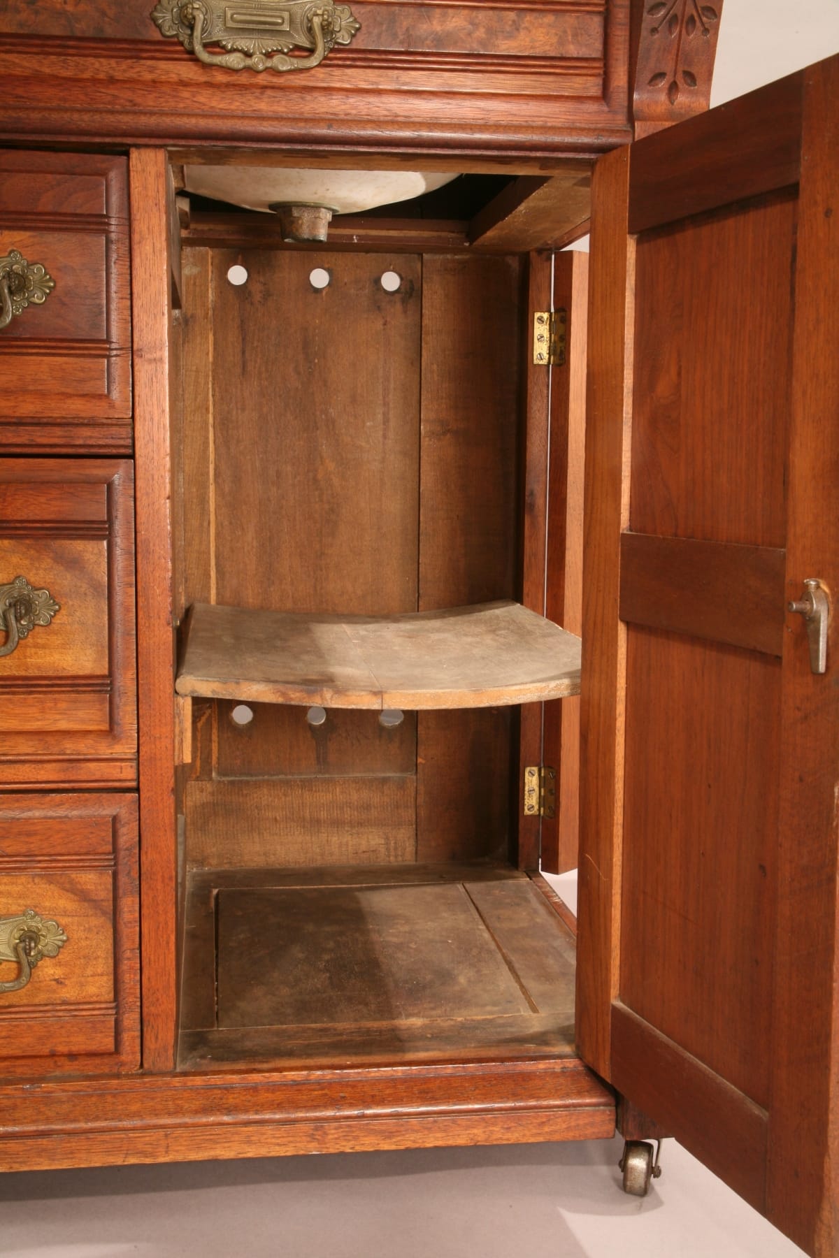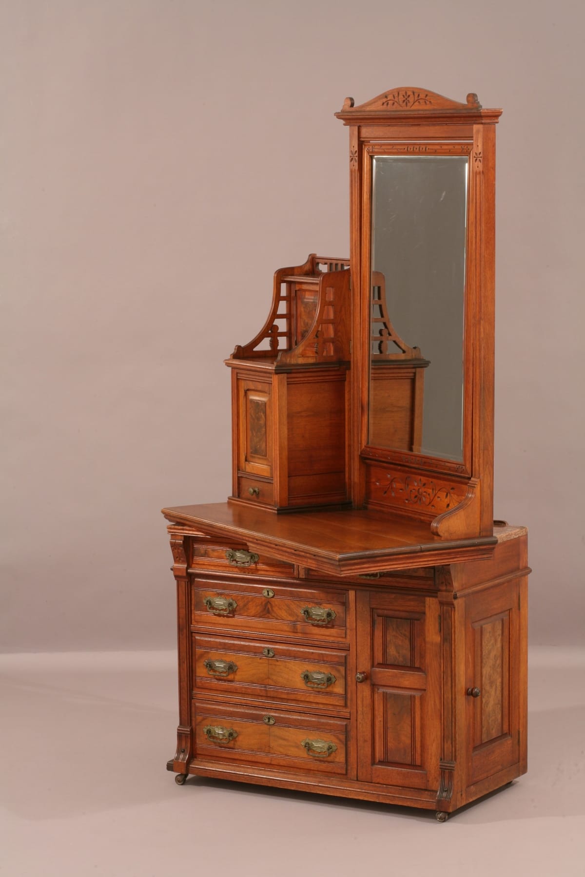 This ingeniously designed dressing case was used in a rural hotel without indoor plumbing. It hides a complete, self-contained washing system behind its stylish exterior.