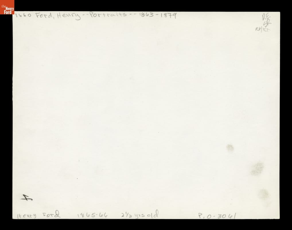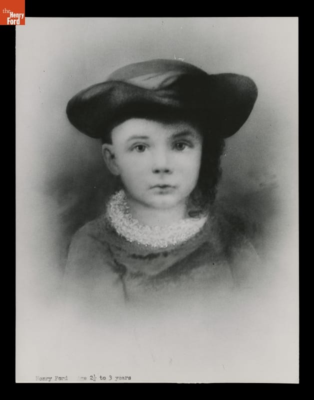 Henry Ford was born July 30, 1863, and he was no more than three years old when he posed for his first photographic portrait. His parents, William Ford and Mary Litogot Ford, had lost their first son at birth in January 1862, but Henry arrived safe and sound. He was followed by five siblings: John, Margaret, Jane, William, and Robert.