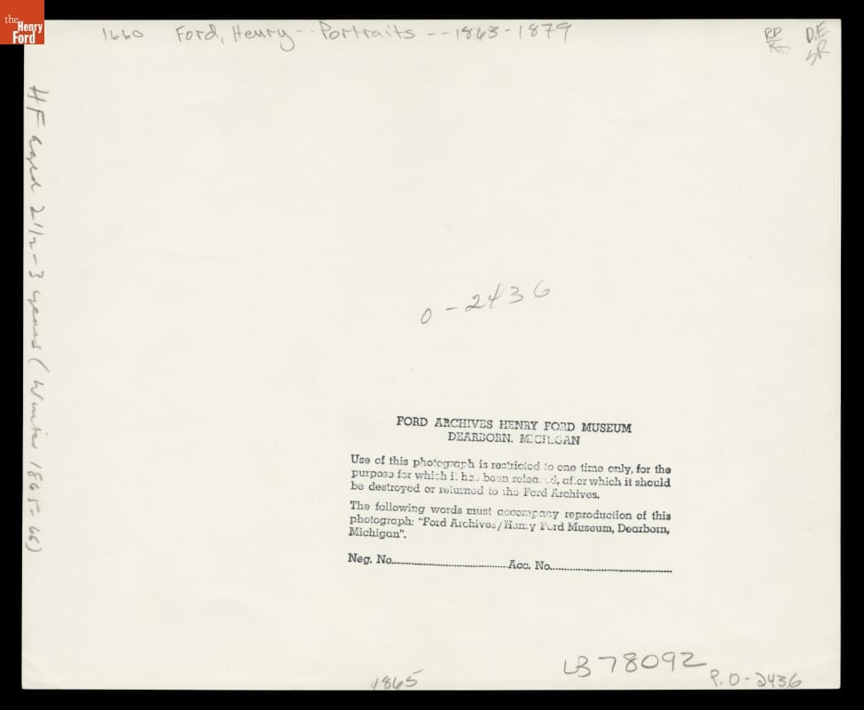 Henry Ford was born July 30, 1863, and he was no more than three years old when he posed for his first photographic portrait. His parents, William Ford and Mary Litogot Ford, had lost their first son at birth in January 1862, but Henry arrived safe and sound. He was followed by five siblings: John, Margaret, Jane, William, and Robert.