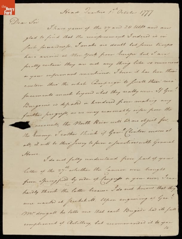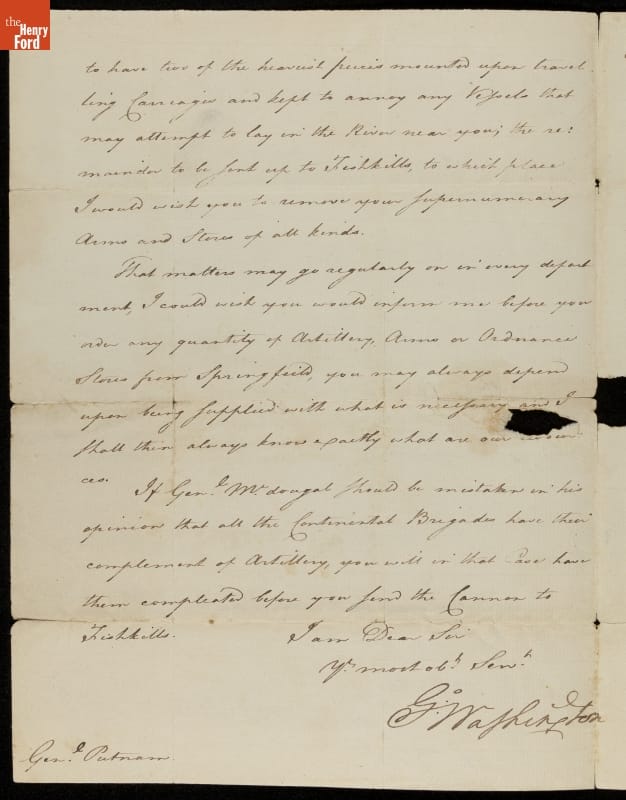 Letter from George Washington to General Israel Putnam, October 1, 1777