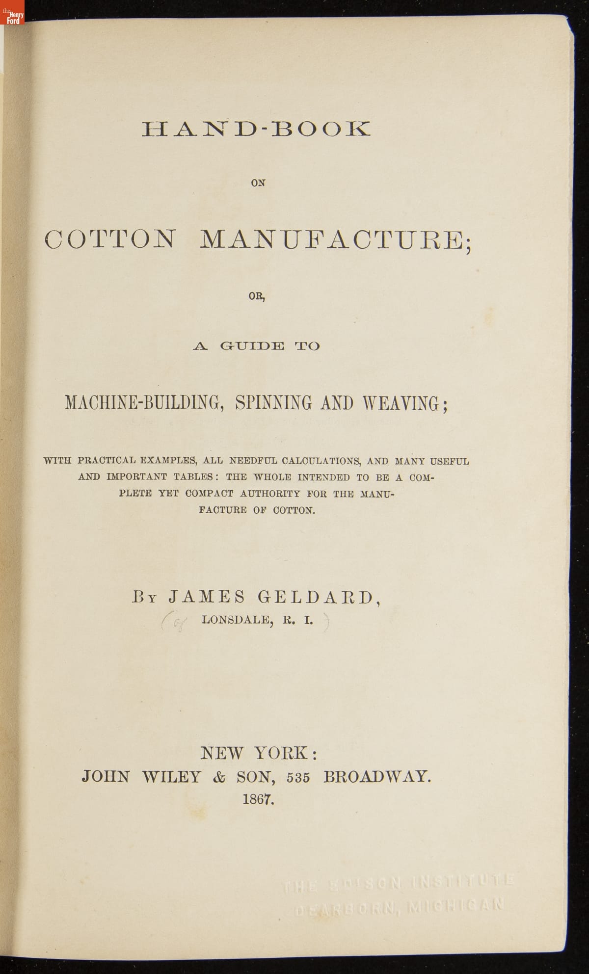 Hand-book on Cotton Manufacture: or, A Guide to Machine-Building, Spinning, and Weaving, 1867