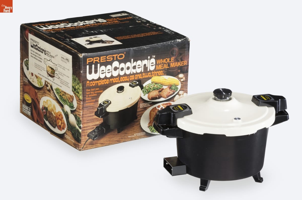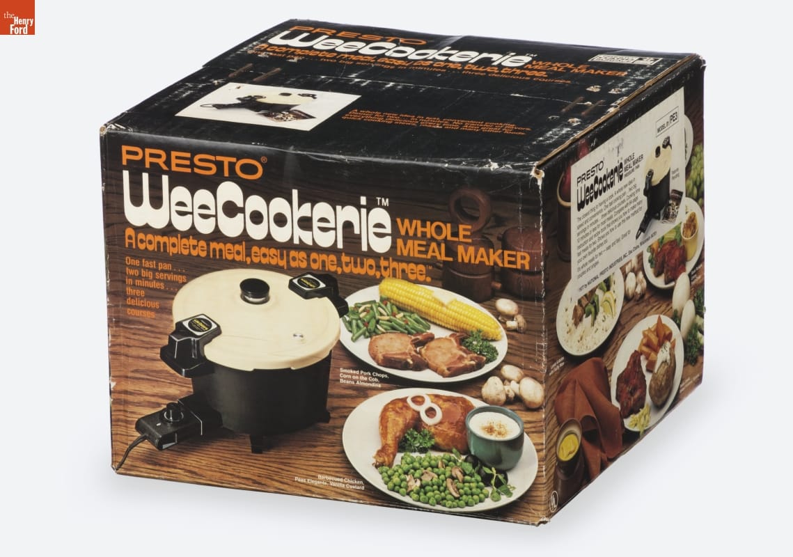 PRESTO/ WeeCookerie / WHOLE MEAL MAKER / PRESSURE PAN / The closest thing to having a cook. A whole new idea in speed and convenience. / [...] / (c) 1977 by NATIONAL PRESTO INDUSTRIES, INC., Eau Claire, Wisconsin, 54701