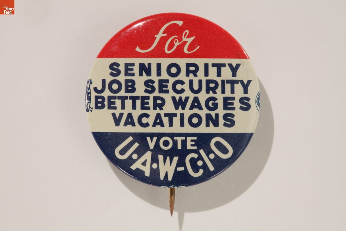 Printed obverse: FOR / SENIORITY / JOB SECURITY / BETTER WAGES / VACATIONS / VOTE / U.A.W. - C.I.O.