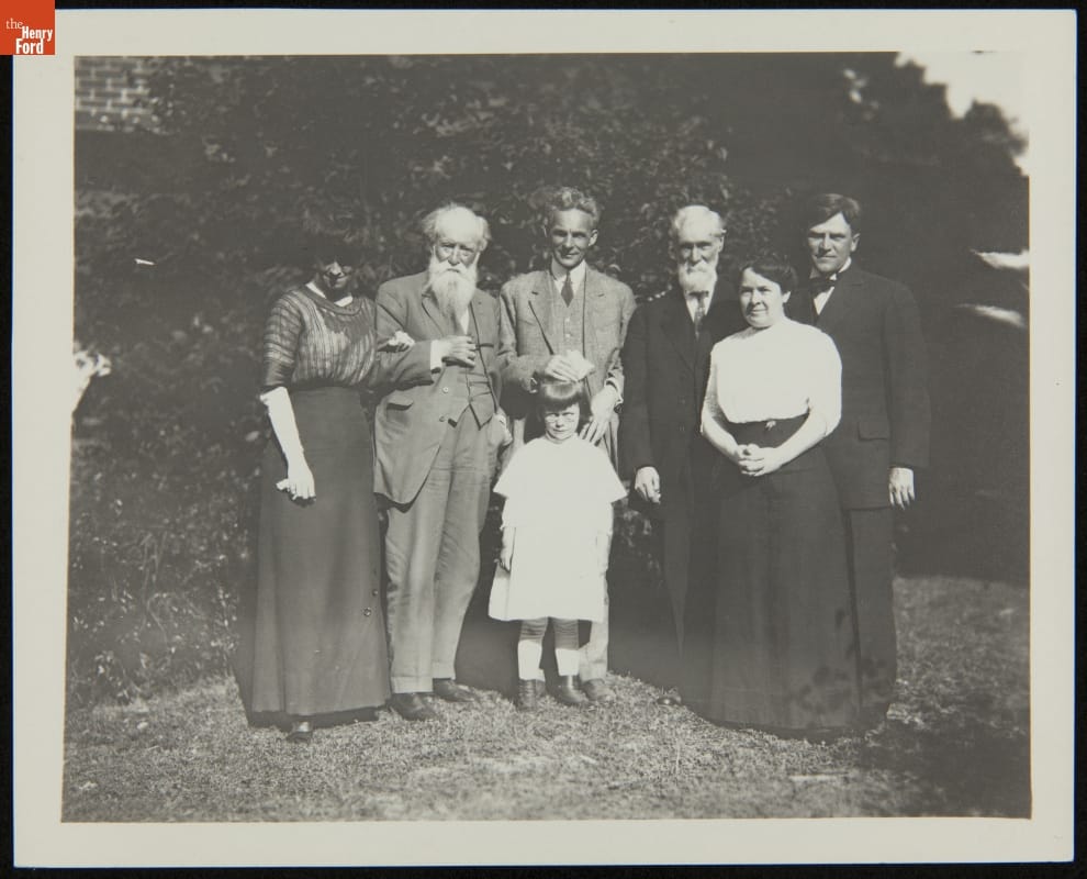 Clara Barrus, John Burroughs, Henry Ford, Peggie, Eden Burroughs, Clara Ford and Glen Buck, 1913
