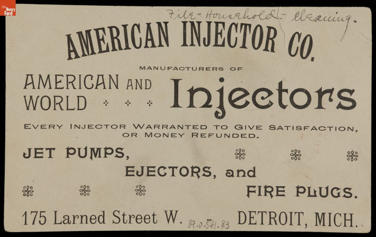 Printed by Calvert Lithographing Co., Detroit, Michigan for American Injector Co., Detroit, Michigan.