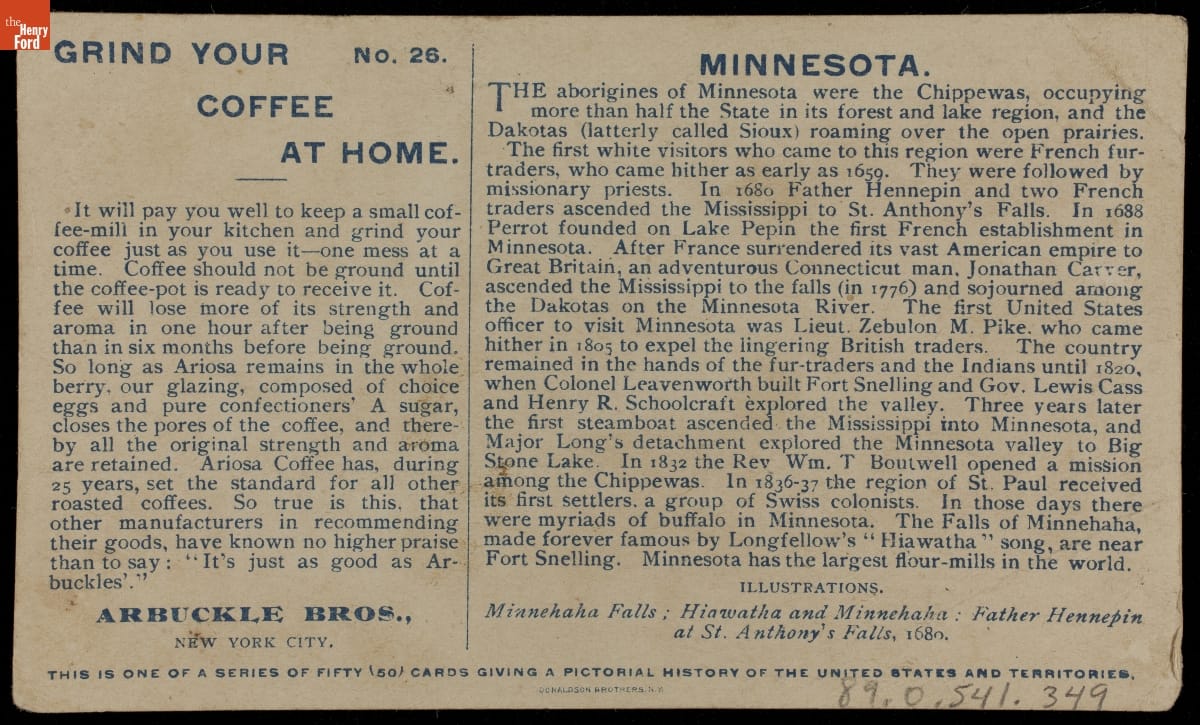 Trade Card for Ariosa Coffee, Arbuckle Bros., "Minnesota," 1892