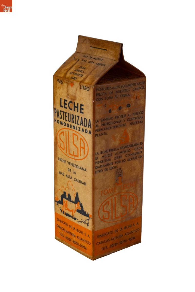 Manufactured for Ex-Cell-O Corporation, Detroit, Michigan, by the Kieckhefer Container Company, Cherry River Division, Delair, New Jersey, Bensenville, Illinois, and Whittier, California, for the Sindicato de la Leche, S. A., Caracas, Venezuela.