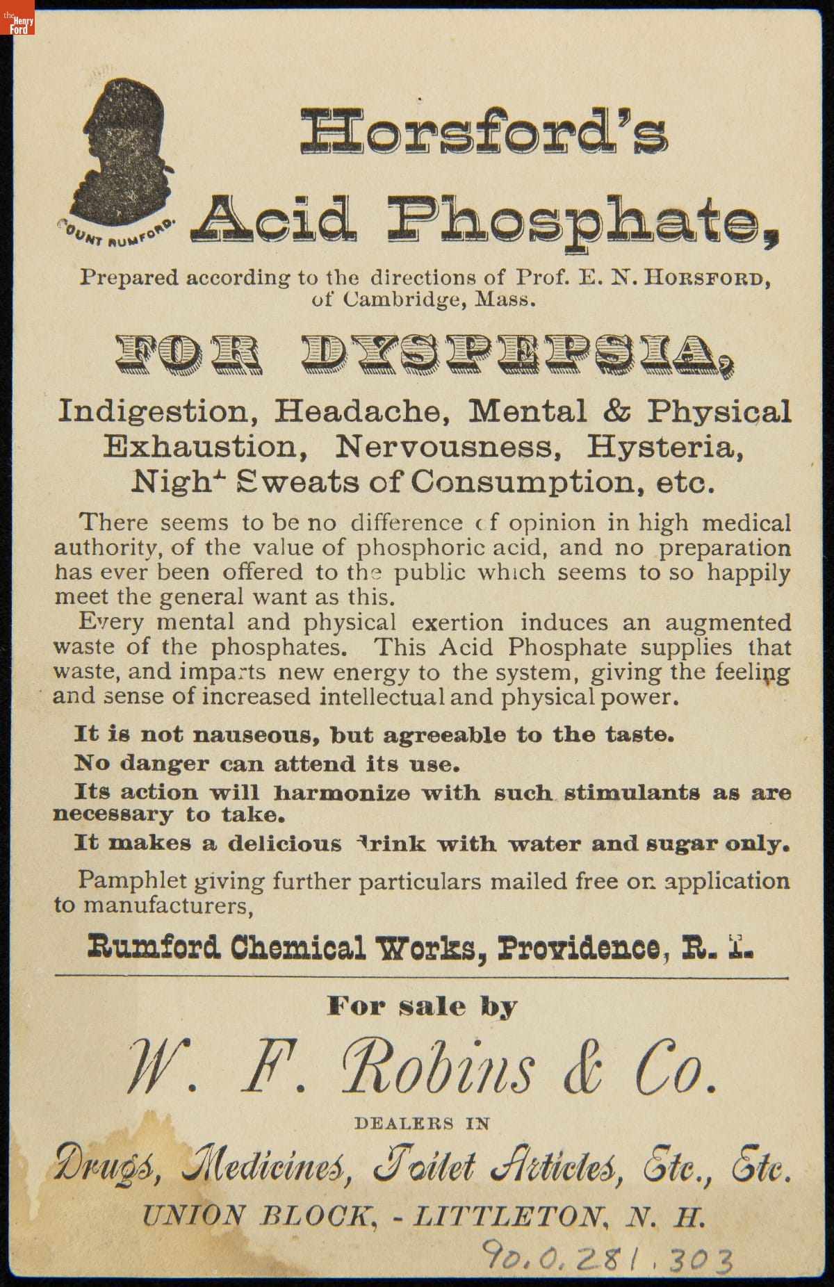Trade Card for Horsford's Acid Phosphate, Rumford Chemical Works, 1866-1890
