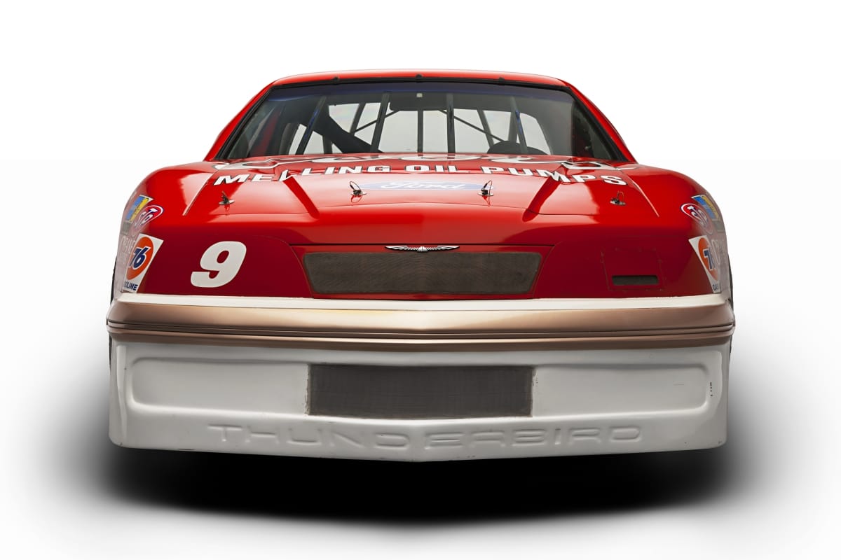 Bill Elliott set NASCAR's all-time speed record with this car when he qualified for the 1987 Winston 500 at Talladega at 212.809 miles per hour. By the 1980s, "stock cars" only looked stock. Underneath this Thunderbird sheet metal is a purpose-built steel tube frame, racing suspension and brakes, and a racing engine that no Ford dealer ever sold.