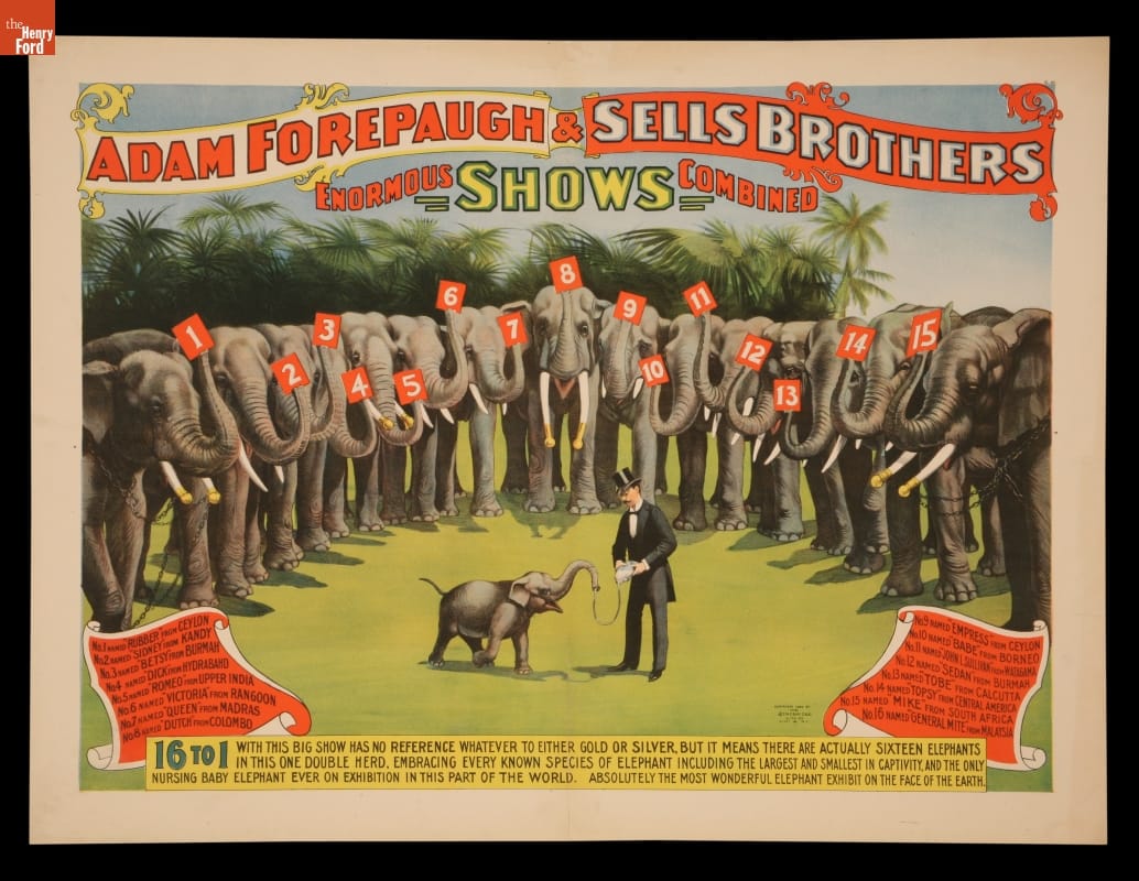 Circus Poster, Adam Forepaugh & Sells Brothers Circus Present a "Most Wonderful Elephant Exhibition," 1896