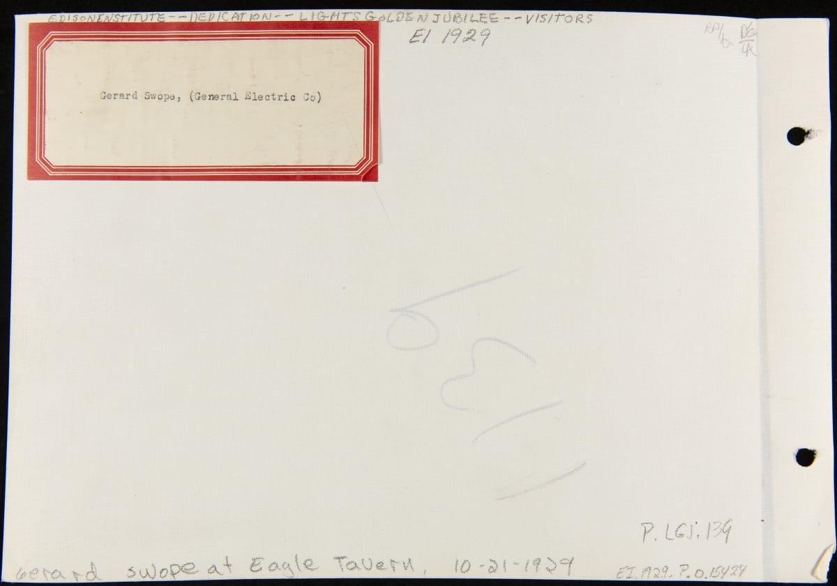 On October 21, 1929, Henry Ford hosted a celebration in Dearborn, Michigan, to honor his friend Thomas A. Edison. Known as Light's Golden Jubilee, the event commemorated the 50th anniversary of Edison's invention of a practical incandescent lamp. Among the invited guest was Gerard Swope, president of General Electric.