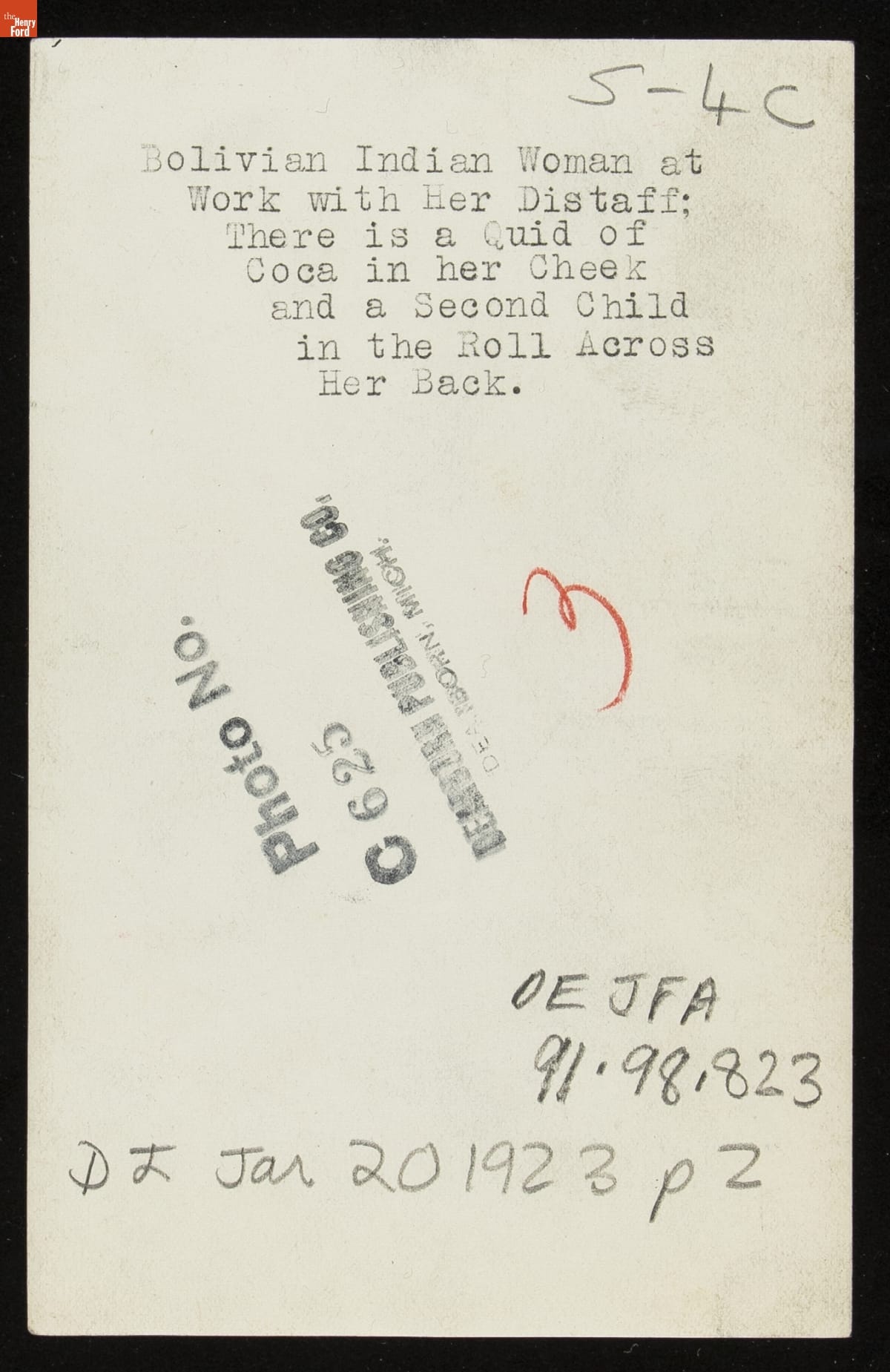 Bolivian Woman Spinning with a Distaff, 1922-1923