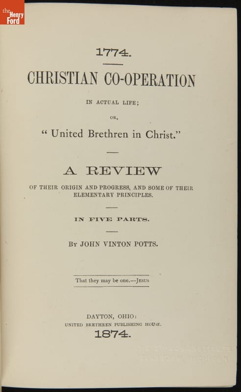 Book Used by the Wright Family, "Christian Co-Operation in Actual Life," 1874
