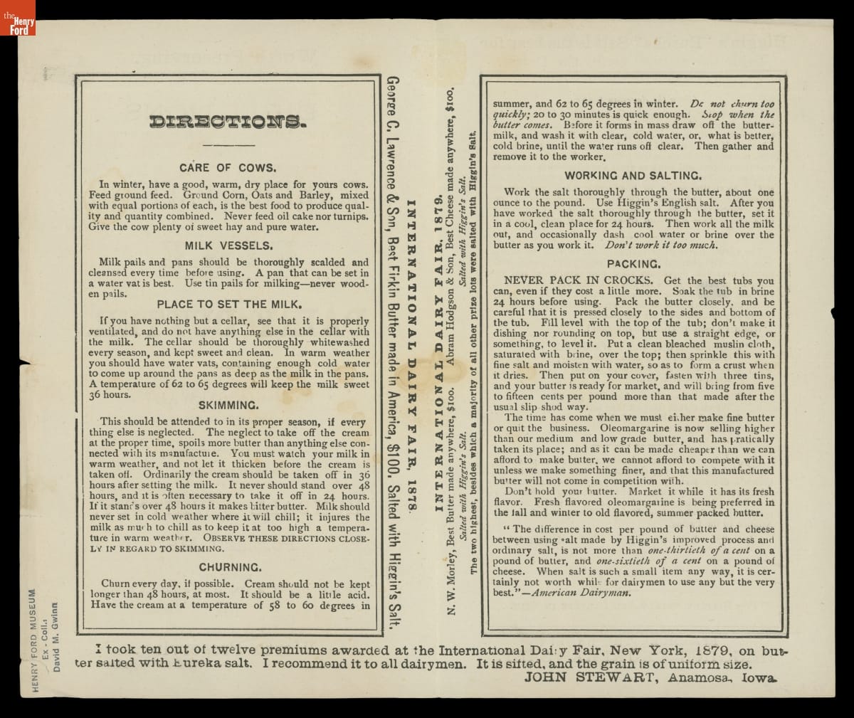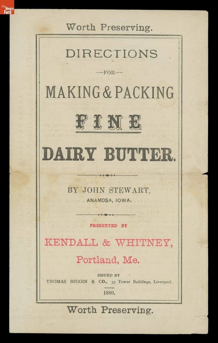 Directions for Making & Packing Fine Dairy Butter, 1880