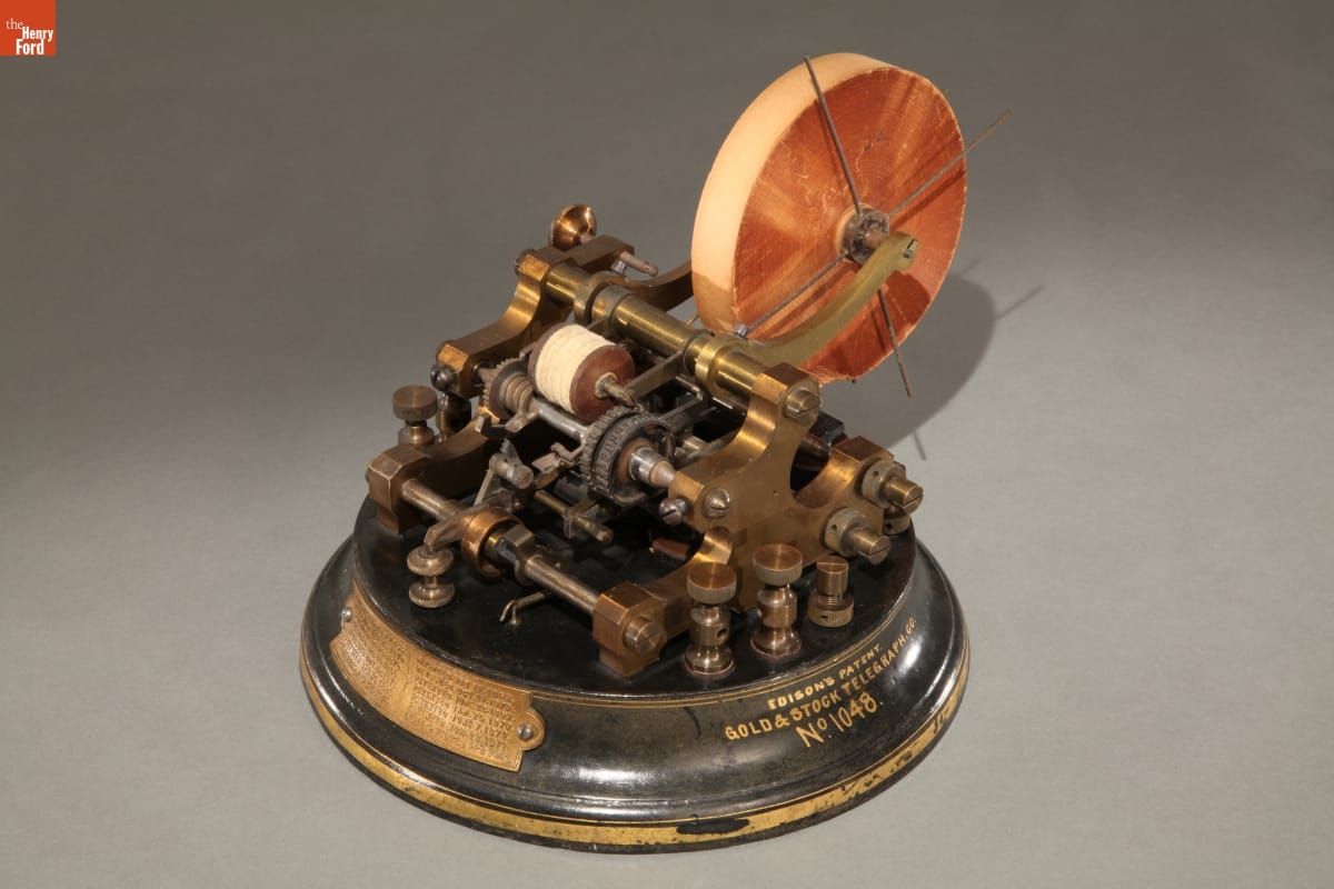 Painted on base: EDISON'S PATENT GOLD & STOCK TELEGRAPH CO.; NO. 1048; EDISON & UNGER MAKERS NEWARK, N.J.