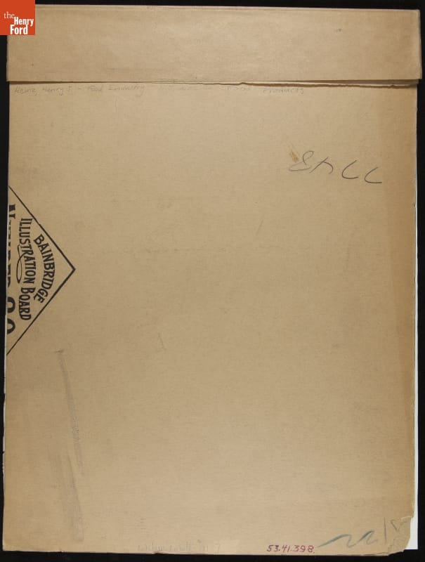 The H.J. Heinz Company employed ambitious and comprehensive advertising strategies to meet consumers at home, in stores, and everywhere in between. Advertising layouts were a step in the marketing process where the drawing, size, color, and arrangement were taken into consideration before the final advertisement was created. This layout features an enlarged Heinz Tomato Ketchup label.