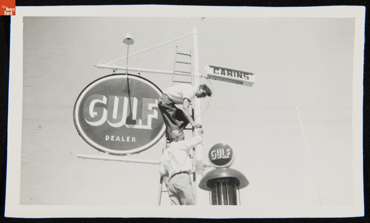 Lore Mac Cabins, Motel and Gas Station Sign, Brooklyn, Michigan, circa 1945