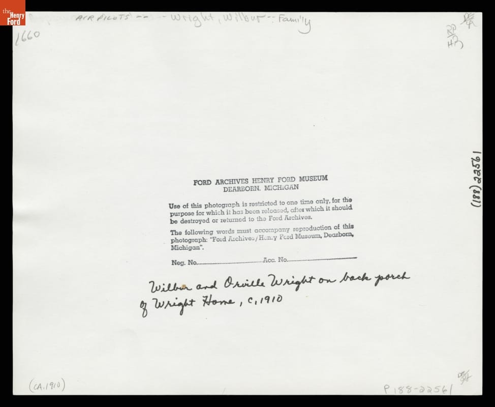 Wilbur and Orville Wright at Home in Dayton, Ohio, circa 1910