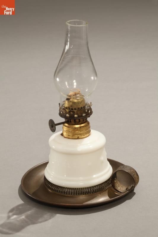 Kerosene was extremely popular for lighting and heating in the mid and late 1800s. This small lamp made by Plume and Atwood Manufacturing Company of Waterbury, Connecticut, used kerosene.