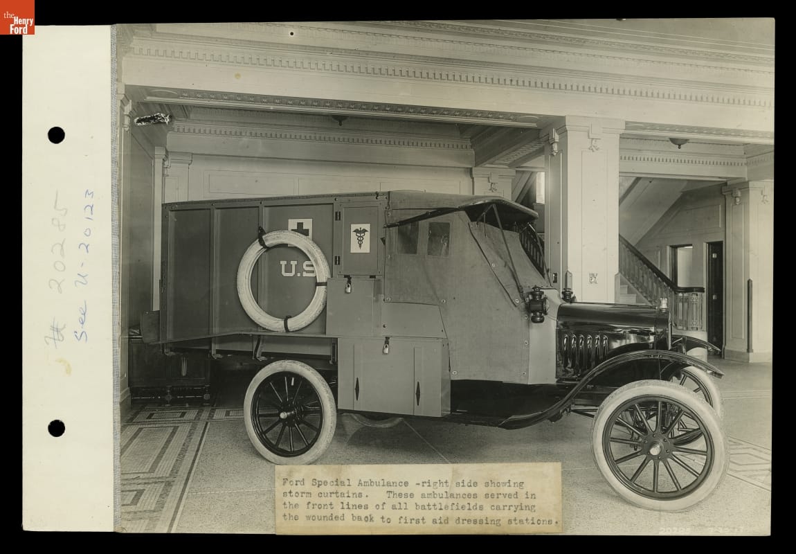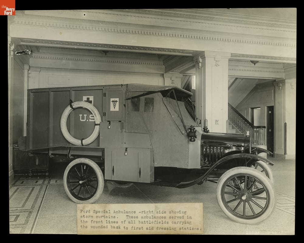When the United States entered World War I, Ford Motor Company personnel collaborated with the U.S. Surgeon General's Office, and with drivers who had served on the frontlines in France, to design a Model T-based ambulance suited to battlefield conditions. Ford built 5,745 ambulances for the Allied Powers during the war, and another 107 for the Red Cross.