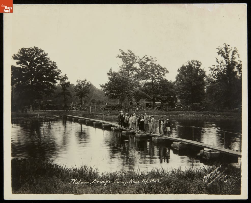 Tourists on Pontoon Bridge, Camp Knox, Kentucky, 1923