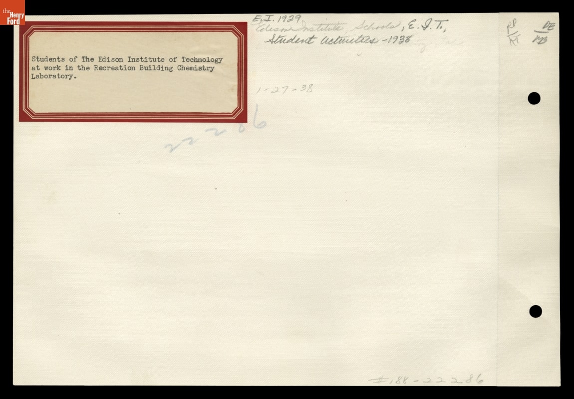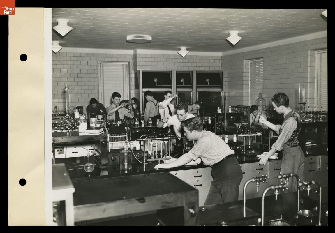 Edison Institute High School Students in Chemistry Laboratory in Lovett Hall, 1937