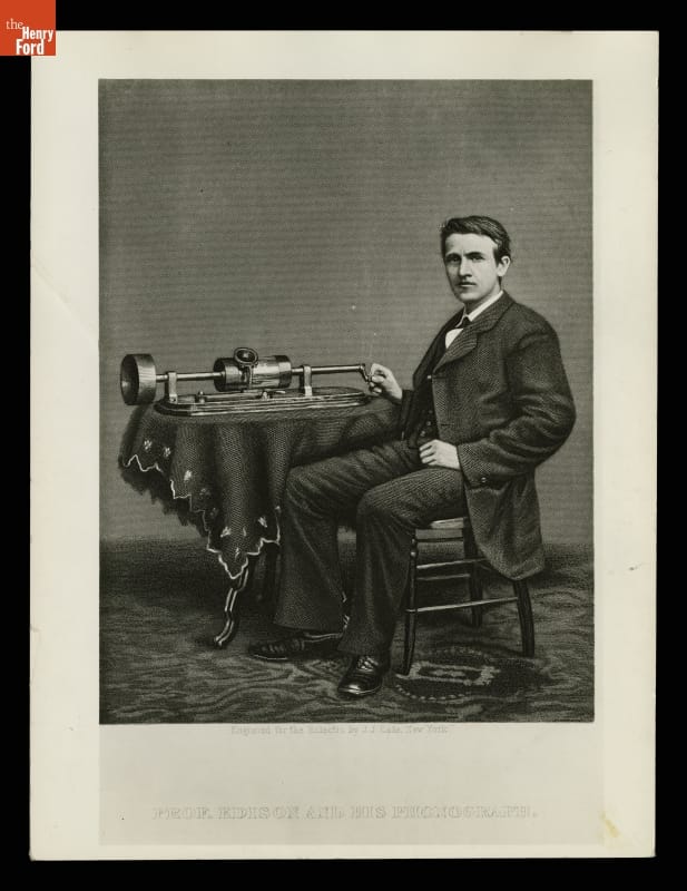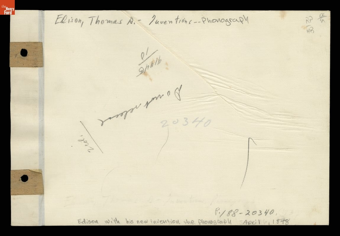 In 1877, Thomas Edison and his laboratory assistants created a machine that could - for the first time - record and reproduce sound. Called the phonograph, it made Edison an overnight celebrity. While in Washington, D.C., to present to the National Academy of Sciences in 1878, Edison sat with his phonograph for well-known Civil War photographer Mathew Brady.