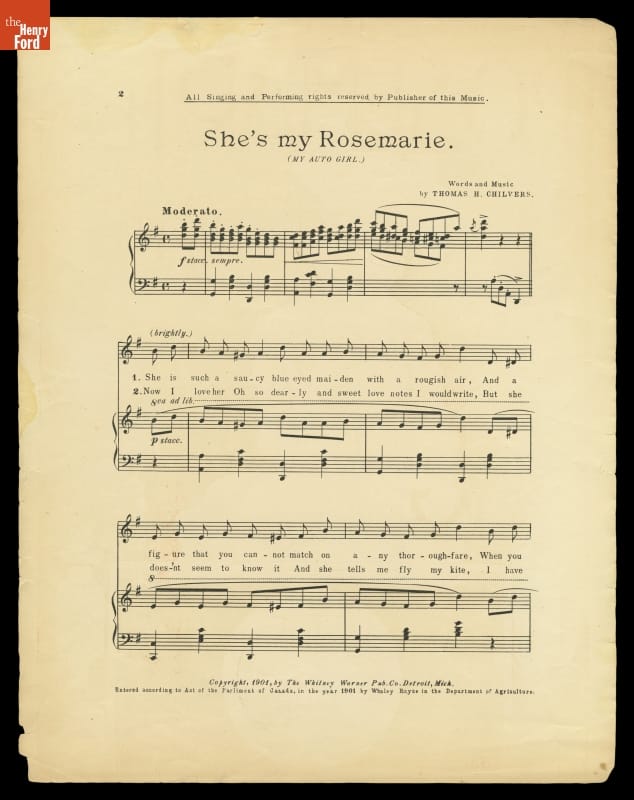 Music Sheet, "Rosemarie, My Auto Girl," 1901
