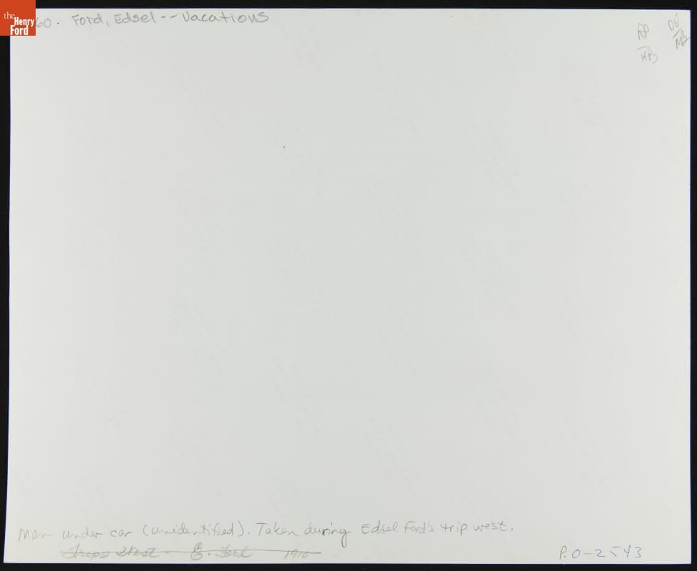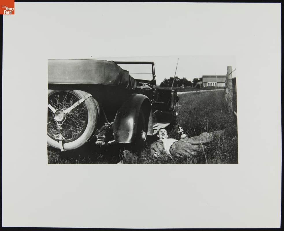 Ernest Kanzler Repairing Automobile during Edsel Ford's 1915 Cross-Country Road Trip