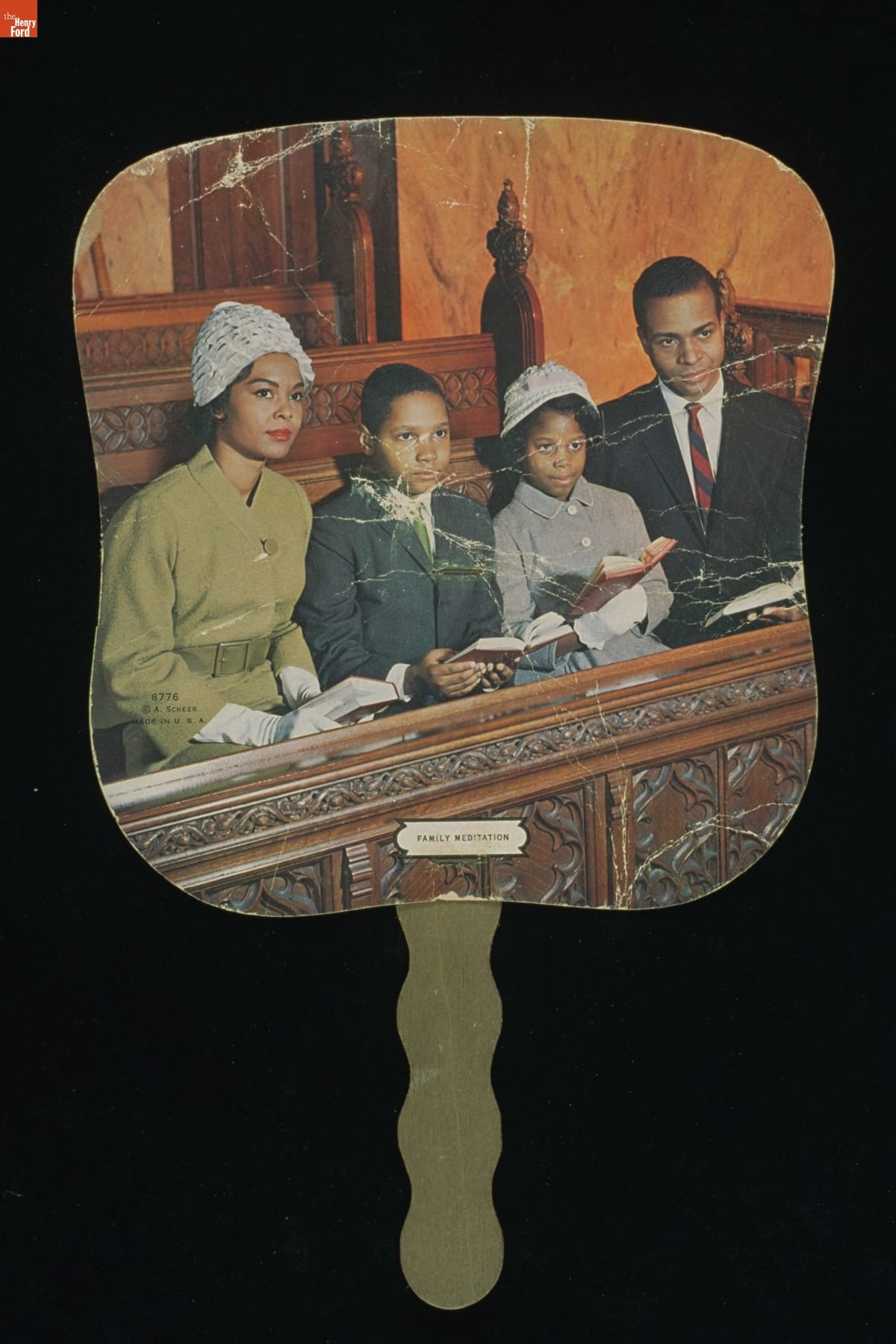 Worshipers in the mid-1900s used inexpensive, handheld fans to keep cool in churches without air conditioning--especially in the American South. Local funeral homes often supplied congregations with these fans. One side usually depicted biblical scenes, devotional settings, or even famous individuals. On the other side, the businesses listed vital services and contact information.