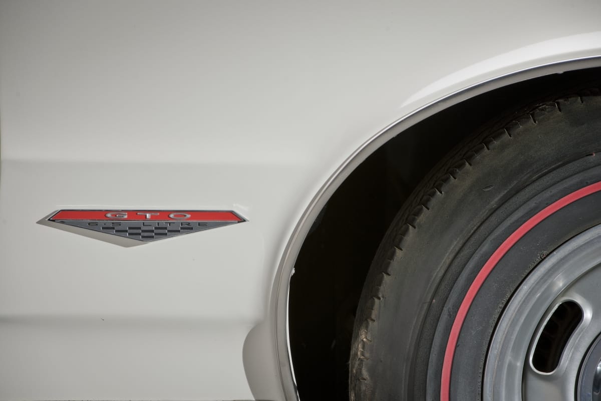 On left and right side decals: GTO / 6.5 LITRE On rear fenders: GTO On right side of trunk: GTO On trunk edge: PONTIAC On front grille: GTO
