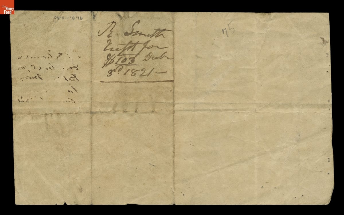 Receipted Bill for Furniture Made by Richard Smith for Andrew Jackson's Hermitage Plantation, 1821