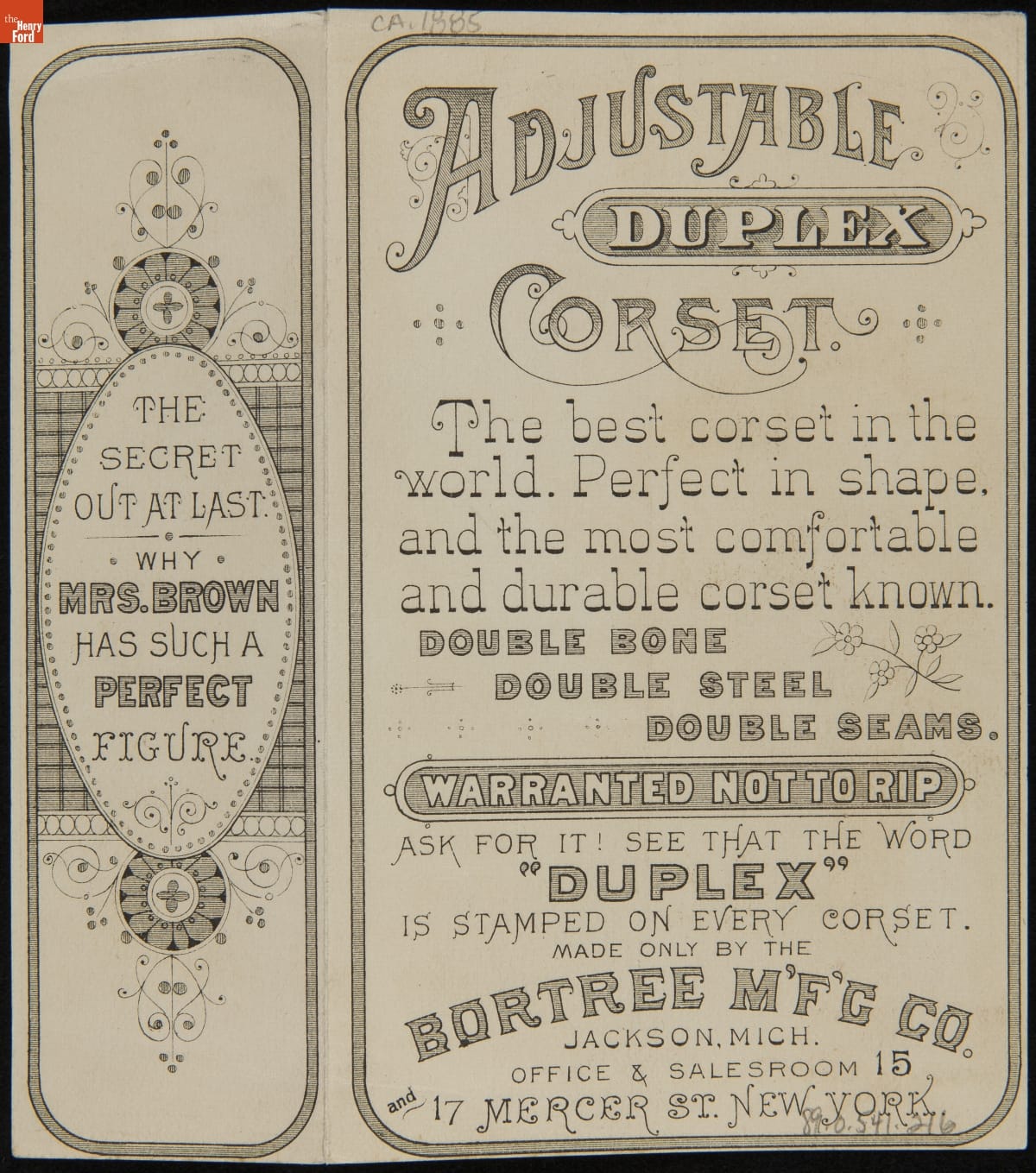 Trade Card for Duplex Corsets, Bortree Manufacturing Co., circa 1885