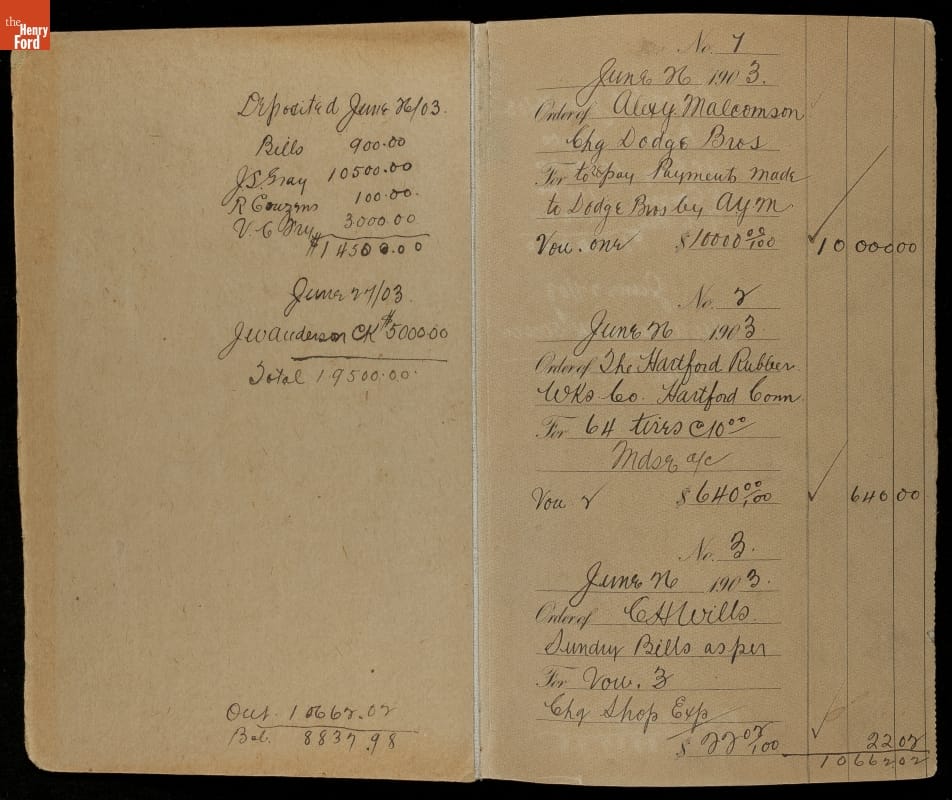 Anyone who has ever balanced a checkbook is unlikely to think of that collection of numbers as exciting or even interesting. But this century-old checkbook tells a tale of hopes, dreams, risks, near-disaster, and fabulous success. It is the first checkbook of the Ford Motor Company.