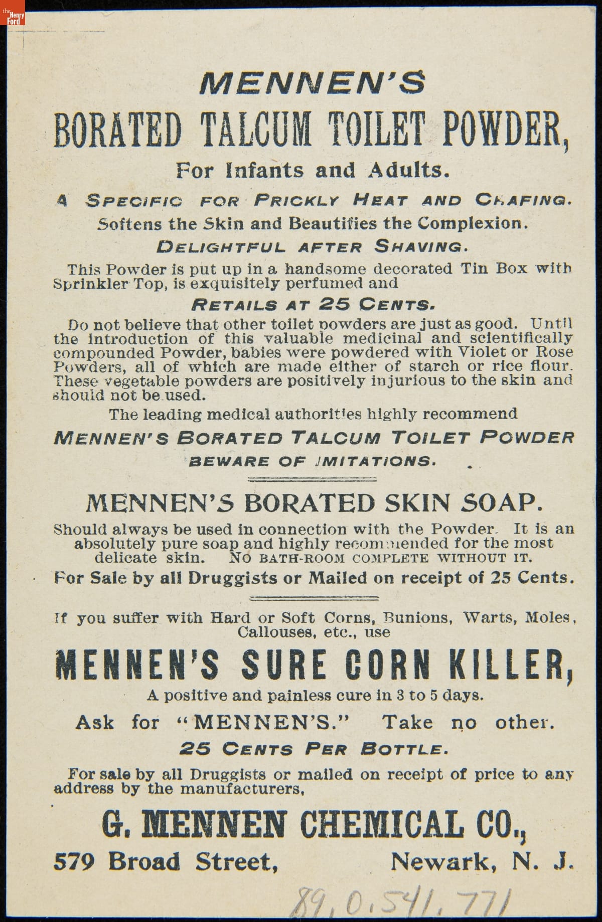 Trade Card for the G. Mennen Chemical Company, "Our Mama Recommends Mennen's Borated Talcum Toilet Powder," 1880-1900