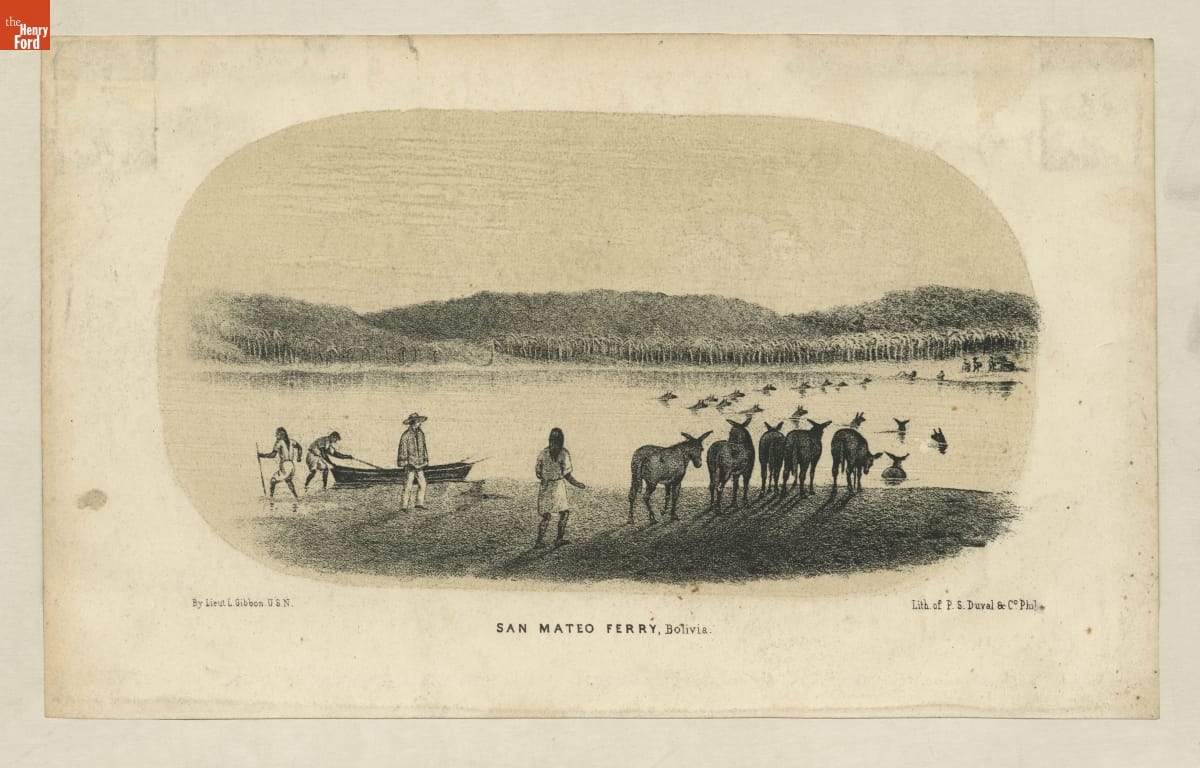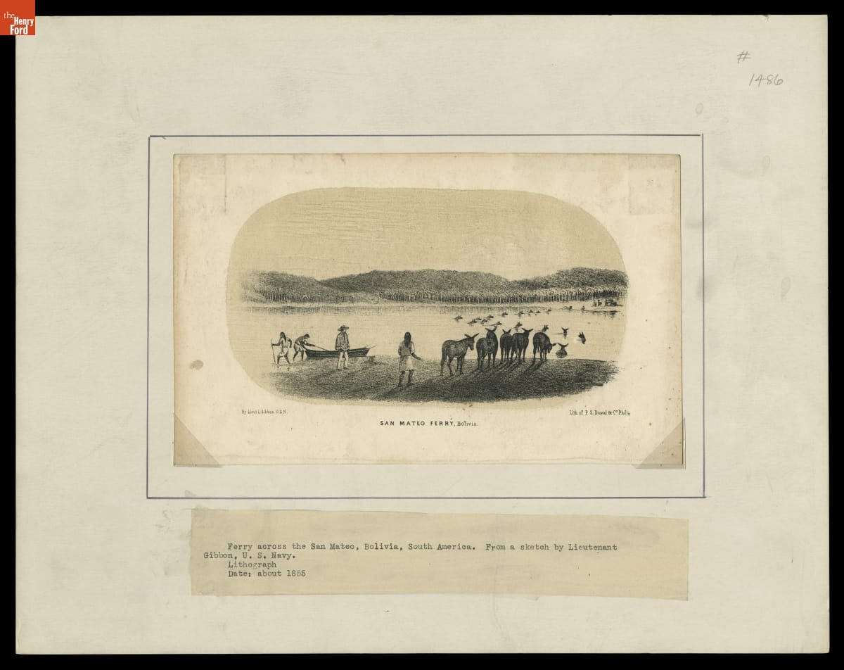 Lithograph, "San Mateo Ferry, Bolivia," circa 1855