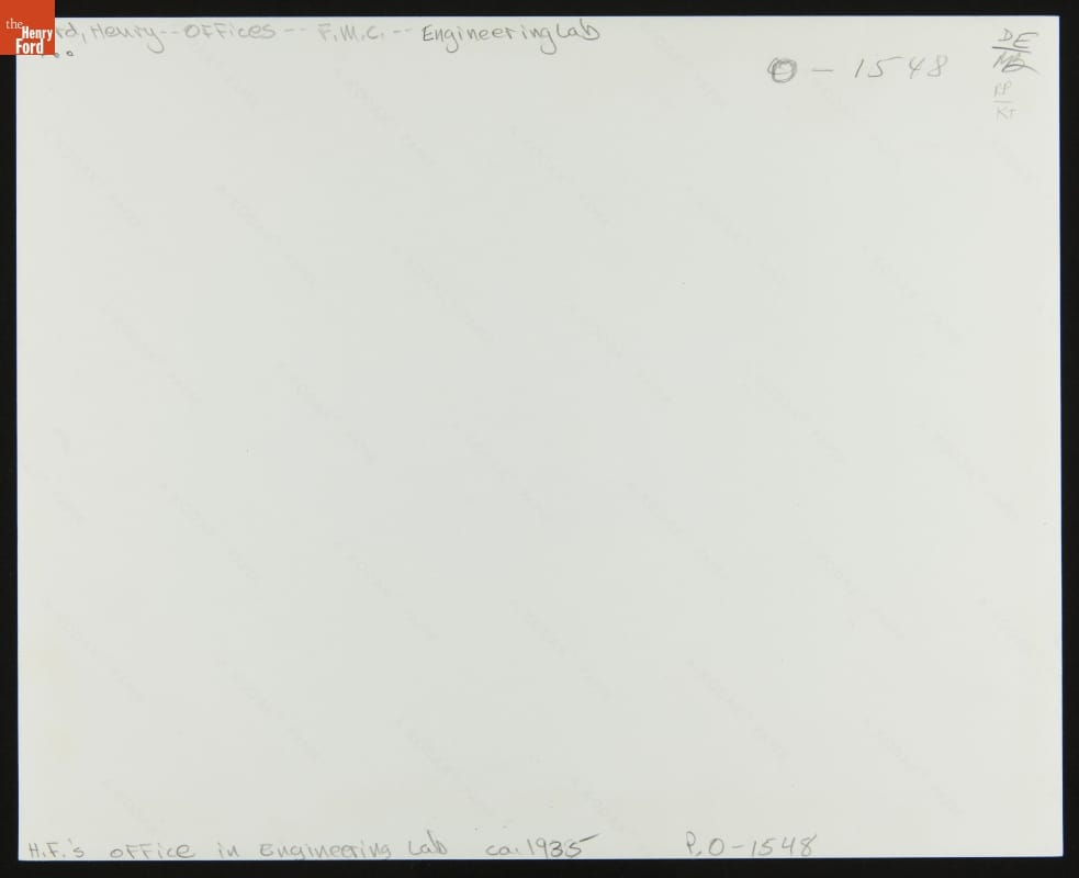 Henry Ford's Office, Ford Engineering Laboratory, circa 1924