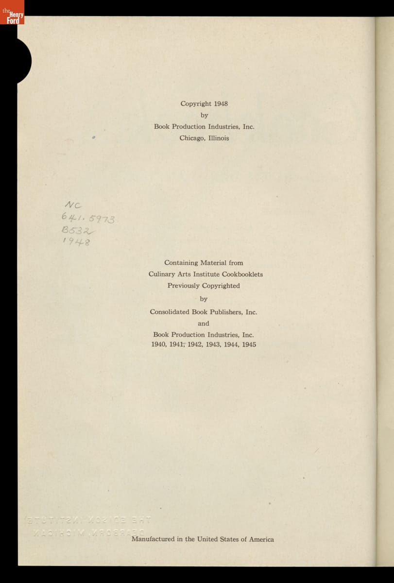 "Culinary Arts Institute Encyclopedic Cookbook," 1948