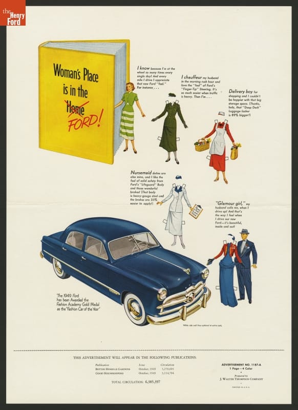 1949 Ford Ad, "Woman's Place is in the Ford!"